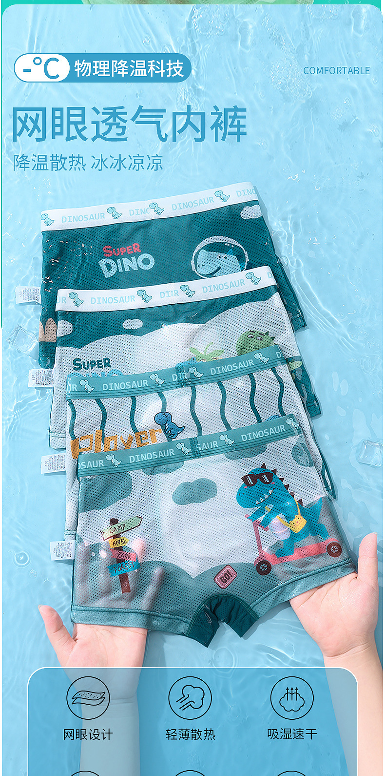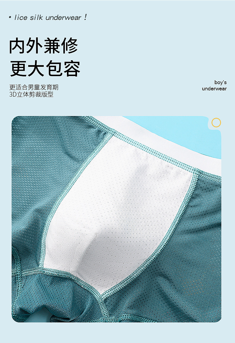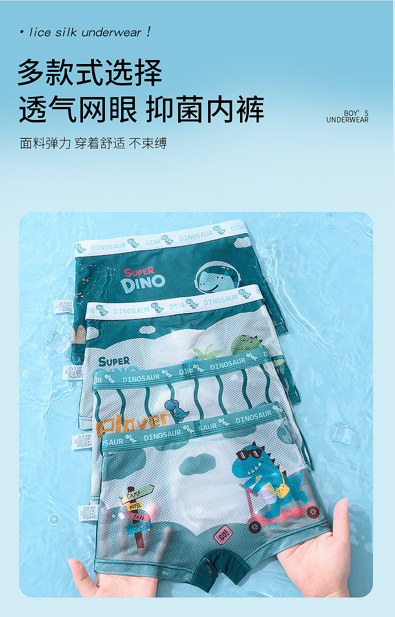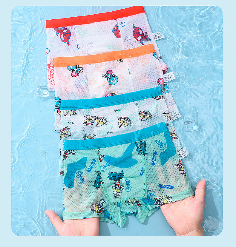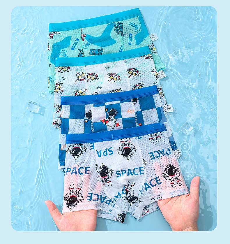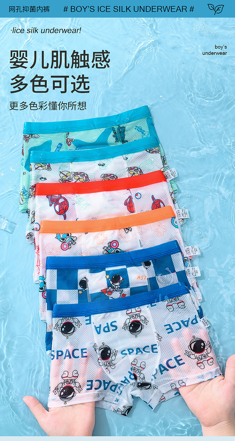 어린이 속옷, 통기성 얼음 실크 소년 속옷, 중대형 어린이를 위한 사각 팬티, 귀여운 만화 아기 소년, 어린이 및 유아스토어 가기