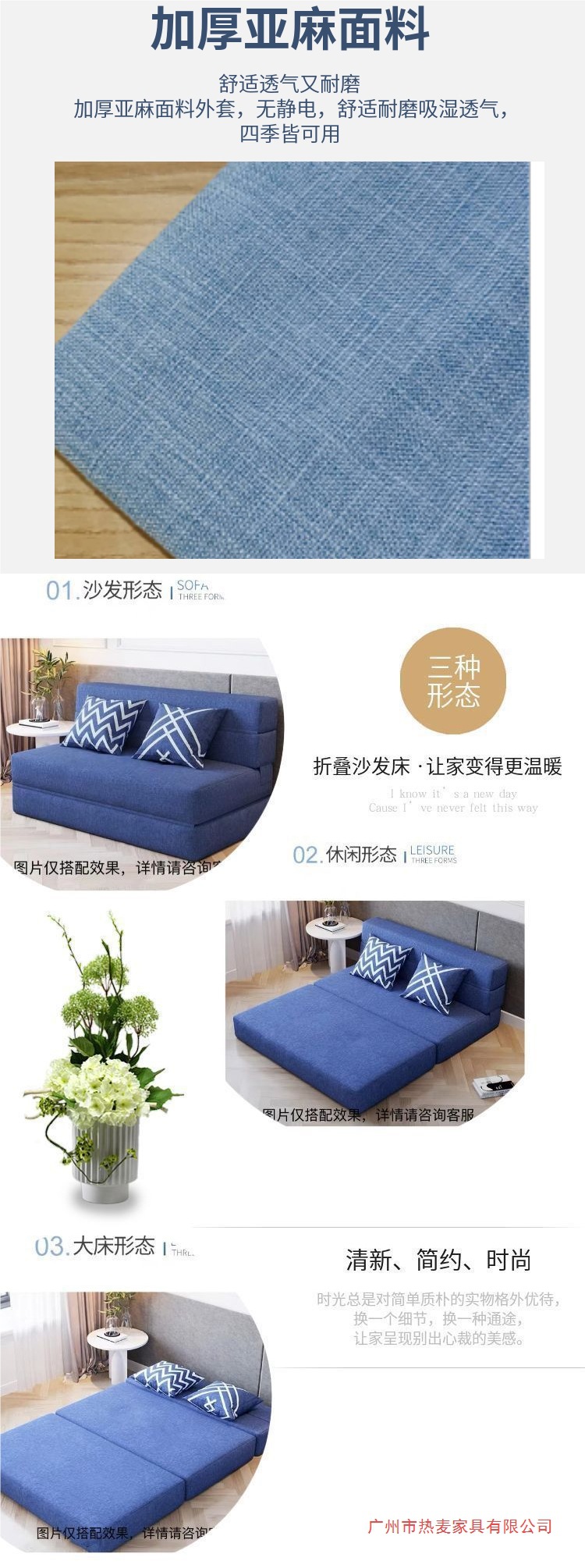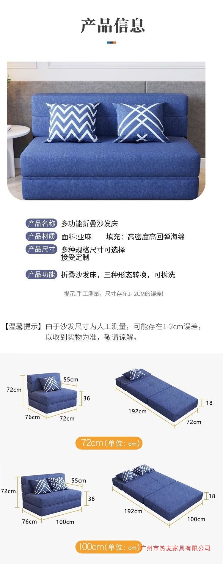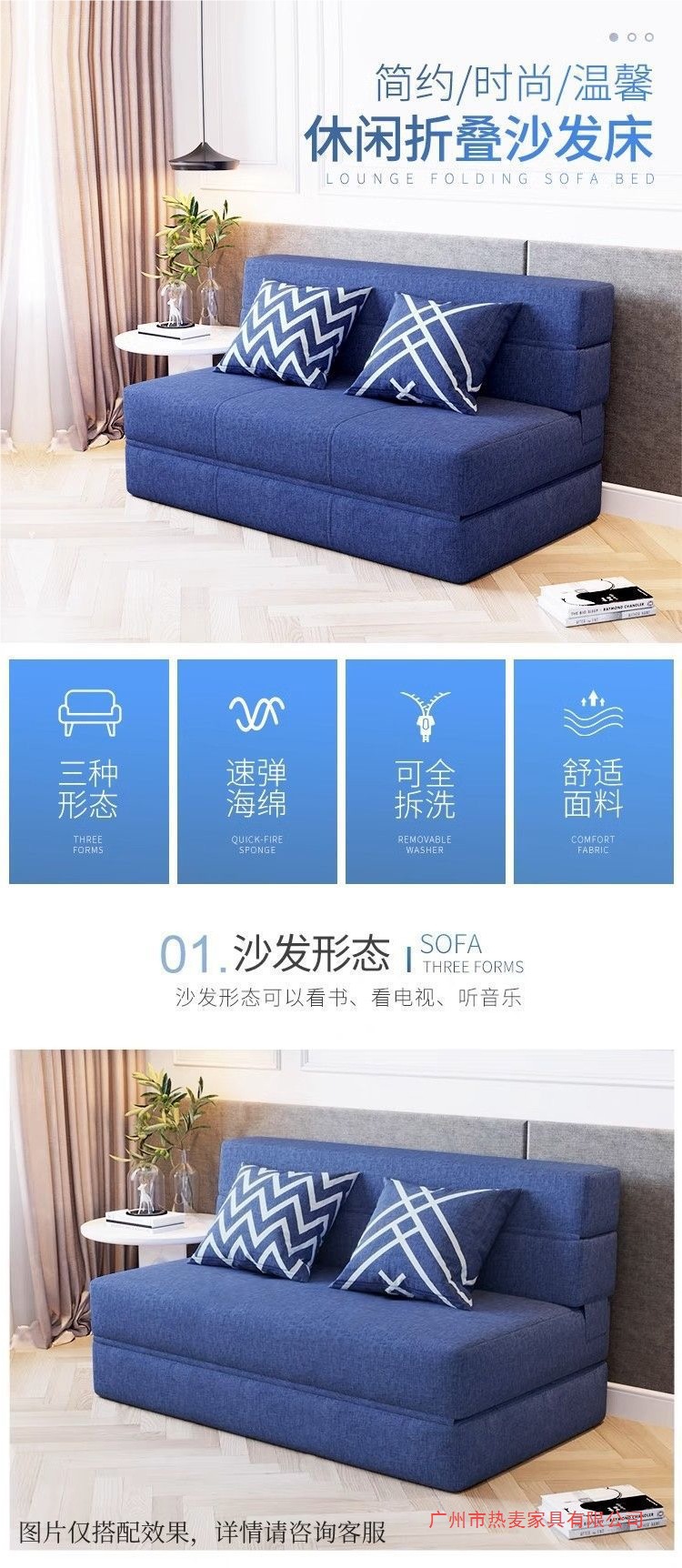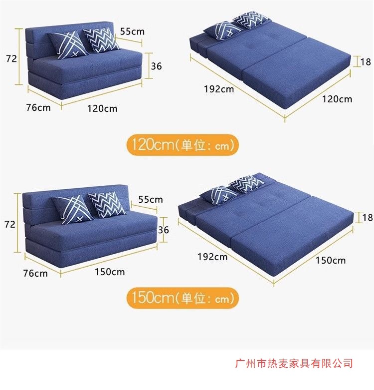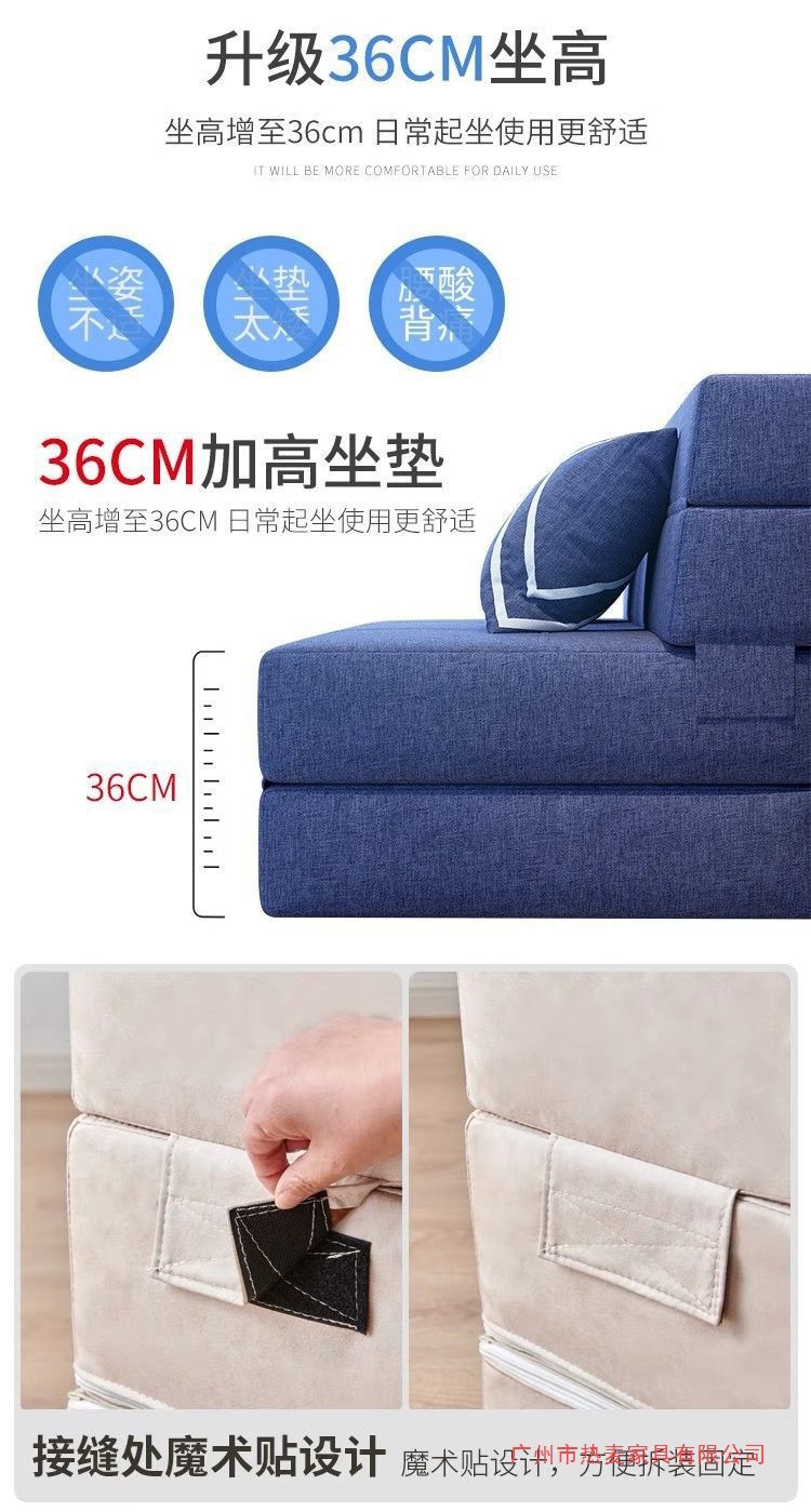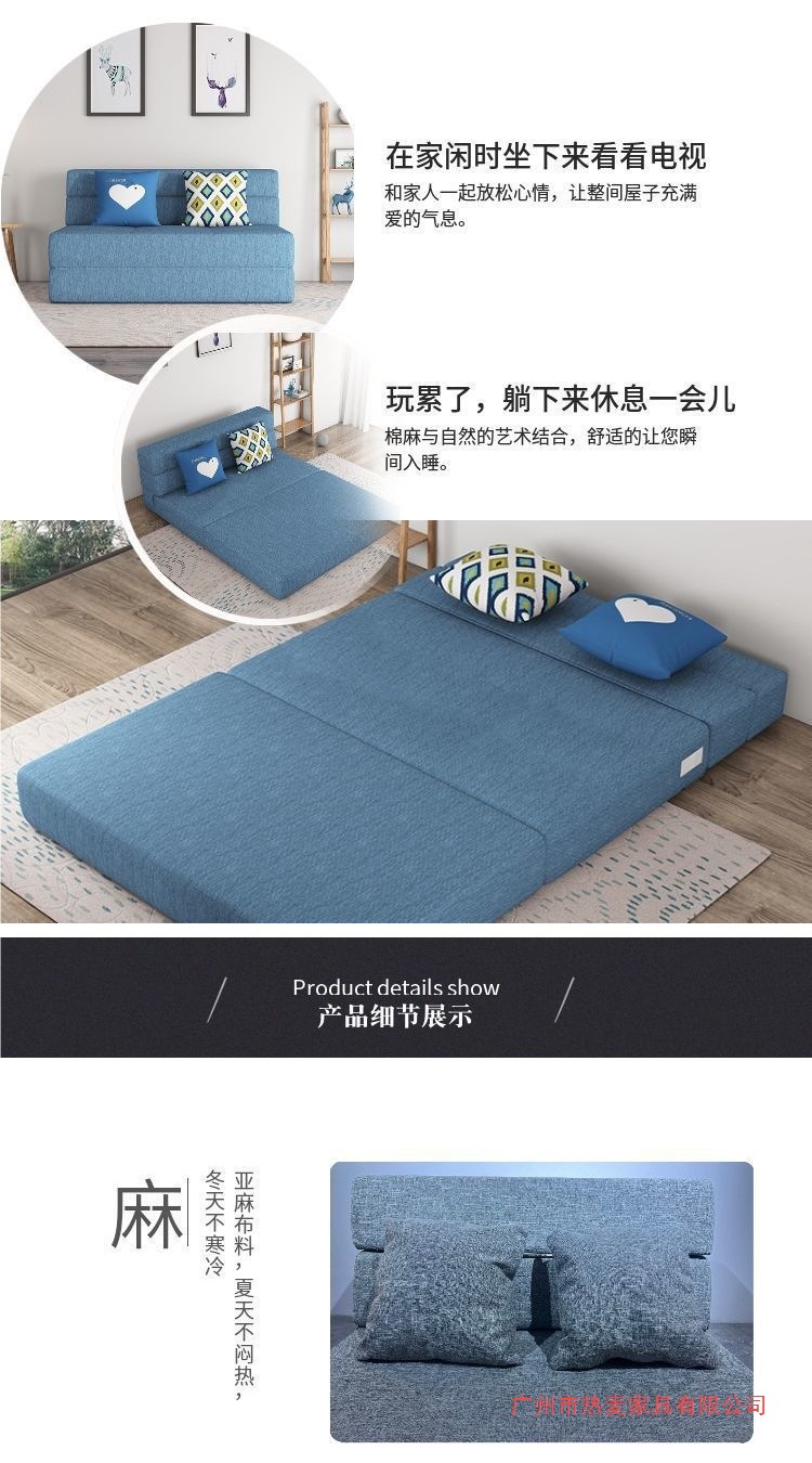 소파 베드, 탈부착 및 세탁 가능, 발코니, 다기능, 이중 접이식, 소형 아파트, 두꺼운 스펀지 시트, 싱글 침대, 탈부착 가능