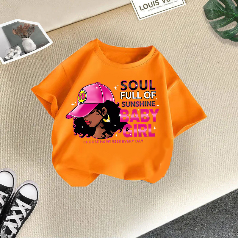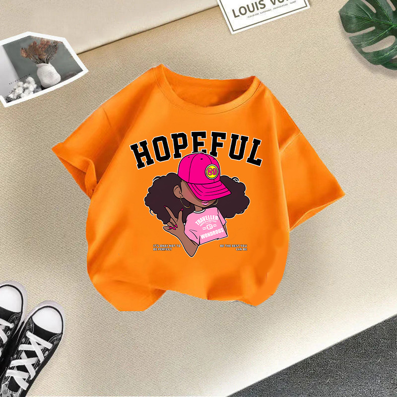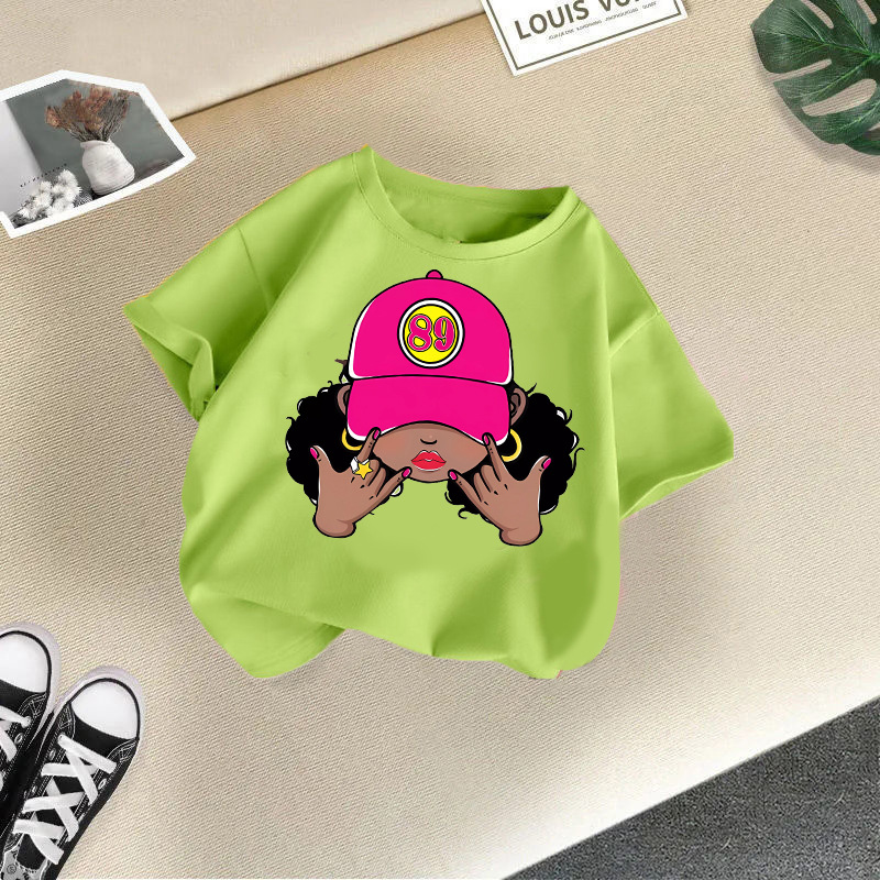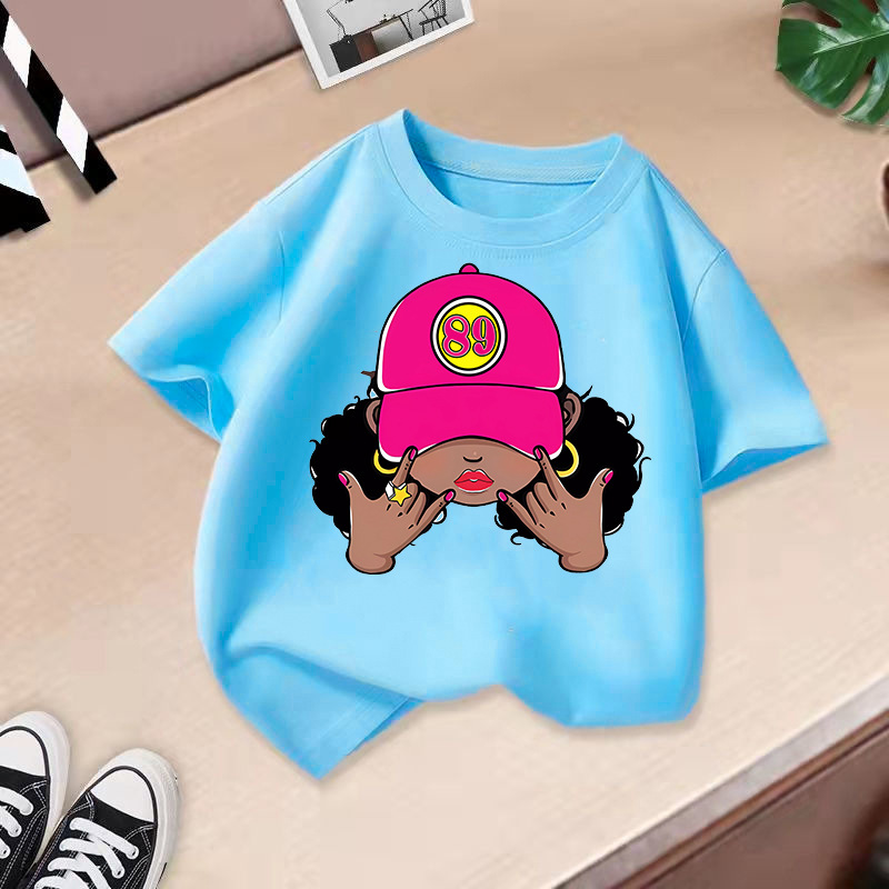 국경 간 소녀 라운드 넥 반팔 티셔츠 소녀 만화 패턴 인쇄 아동 의류 2025 여름 새로운 트렌드