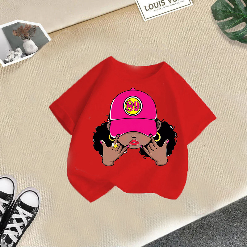 • 로즈 레드 블랙 문자 핑크 모자 소녀 반팔