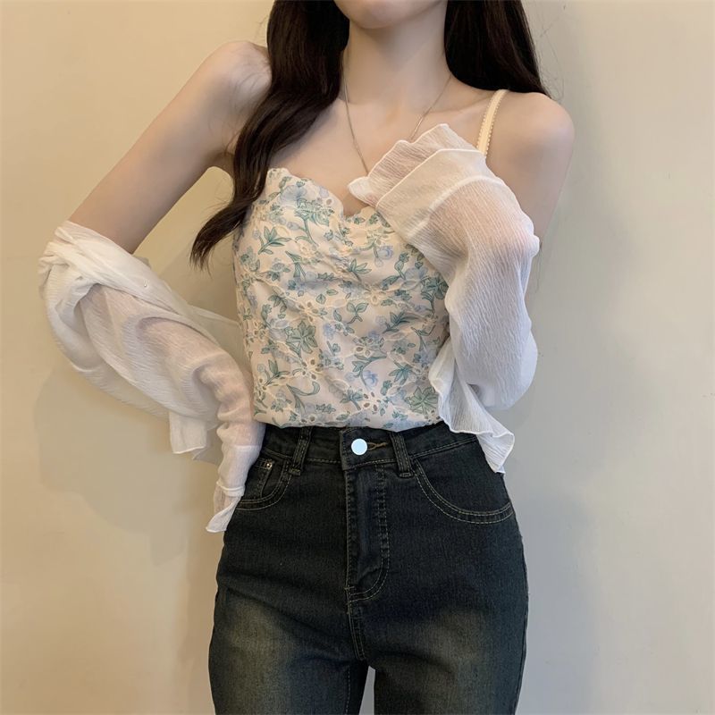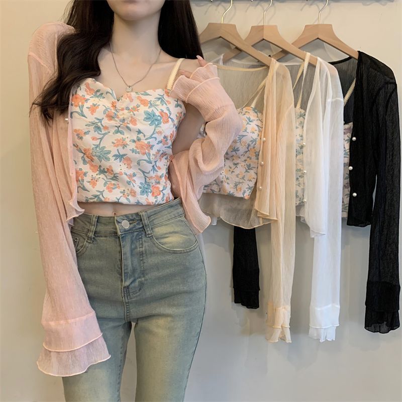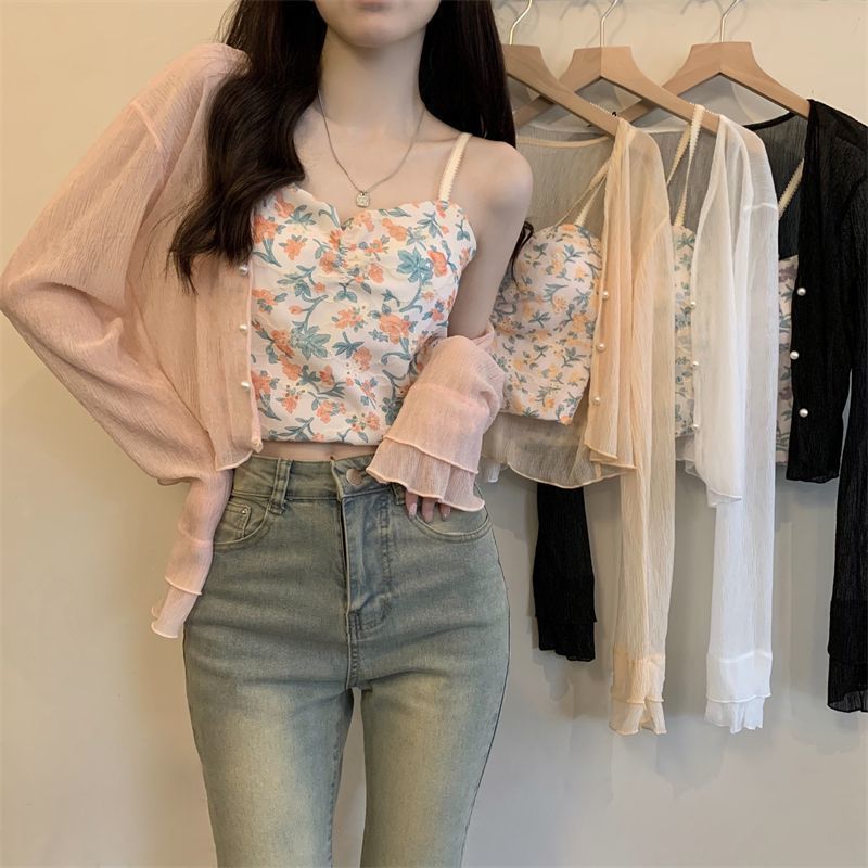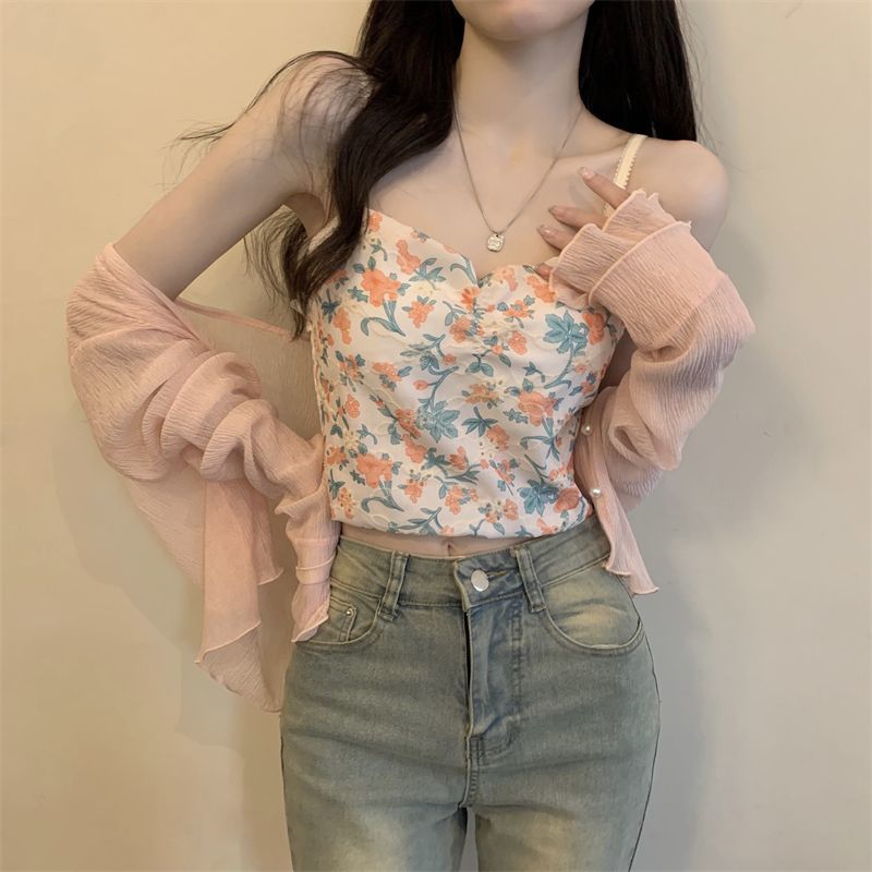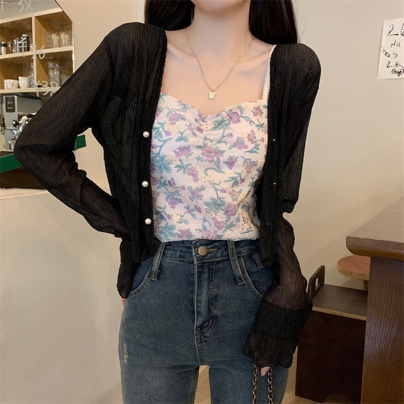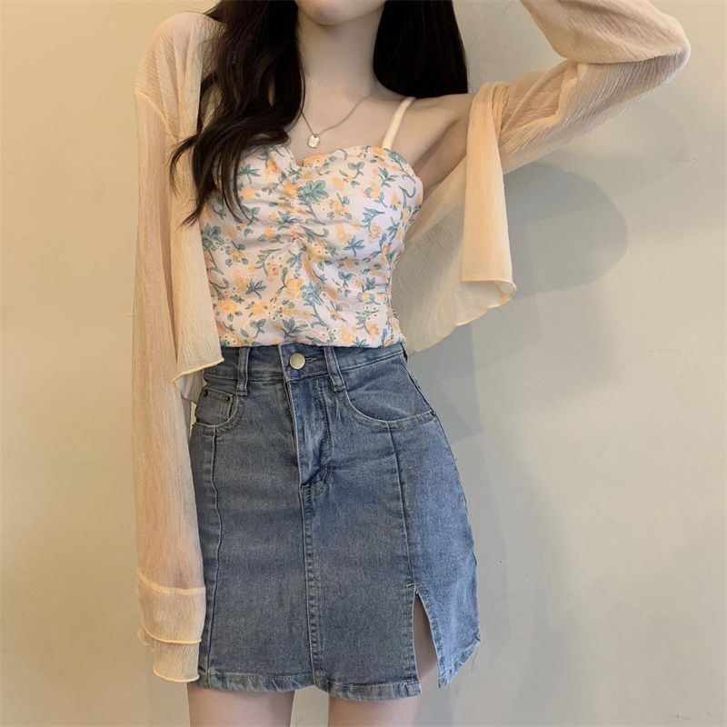 여성용 자외선 차단 쉬폰 셔츠, 여름 신작 숄, 스커트, 가디건, 숏자켓, 꽃무늬 멜빵, 긴팔 상의