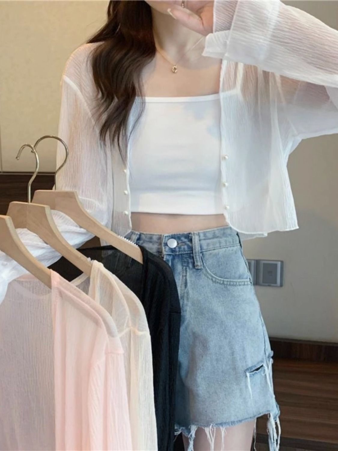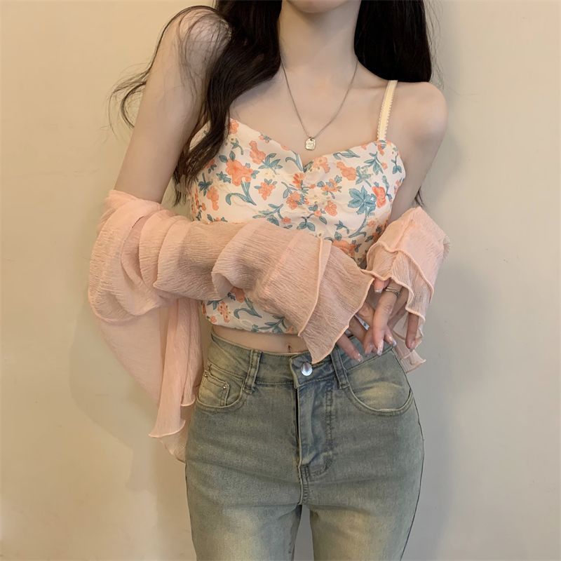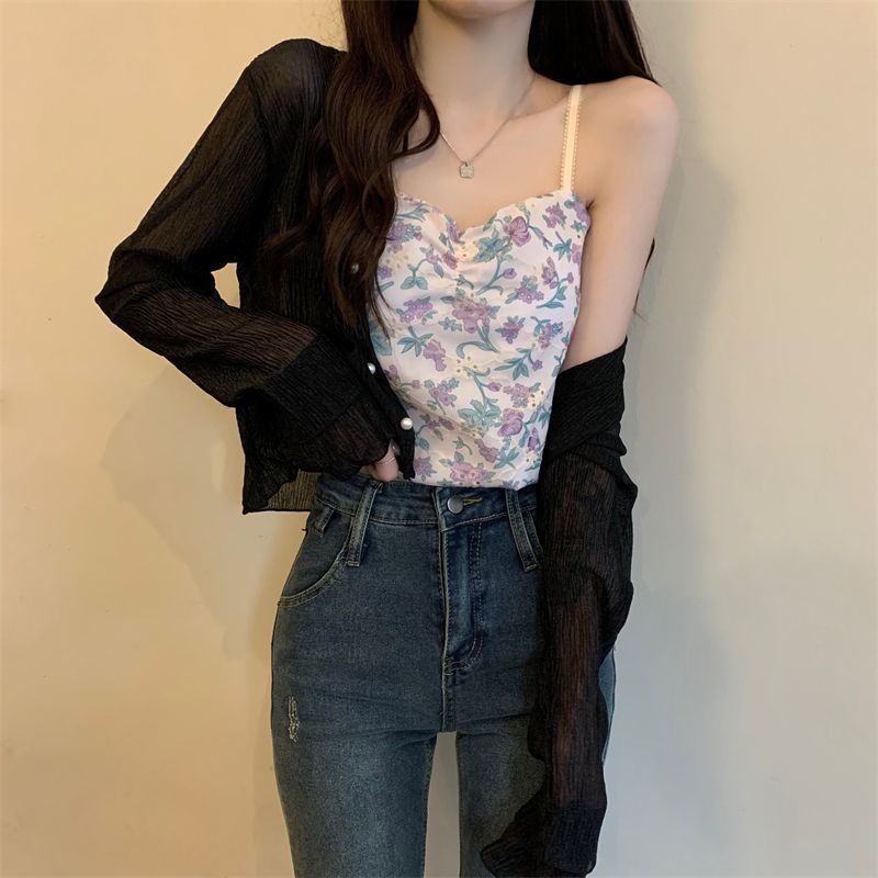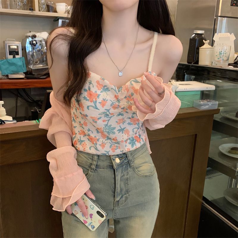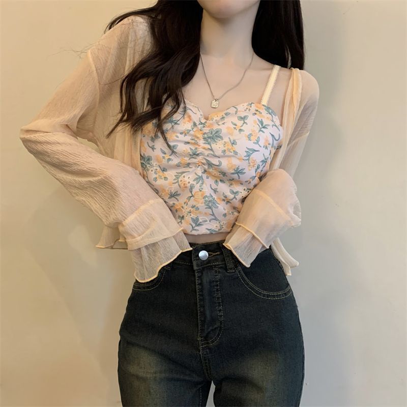 여성용 자외선 차단 쉬폰 셔츠, 여름 신작 숄, 스커트, 가디건, 숏자켓, 꽃무늬 멜빵, 긴팔 상의