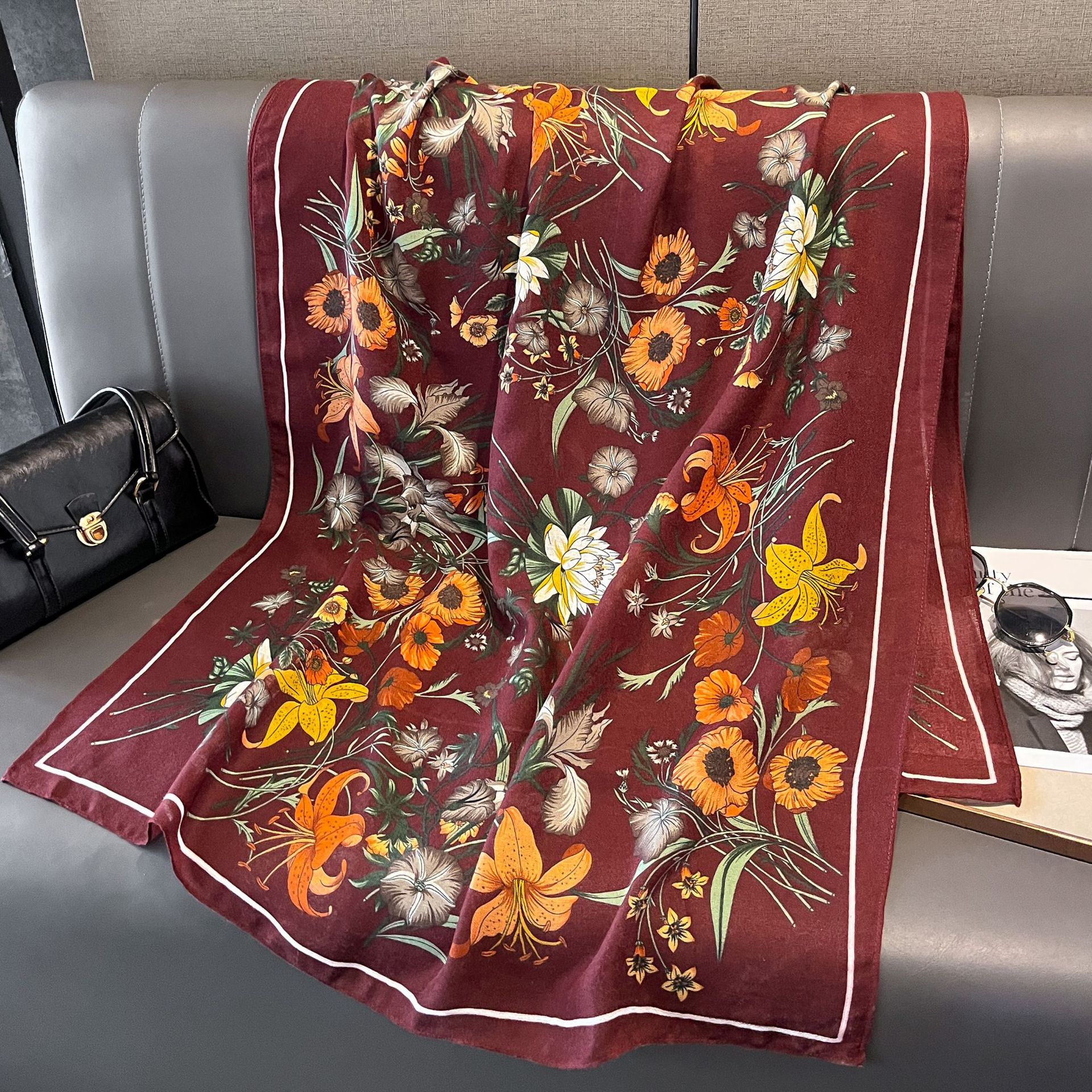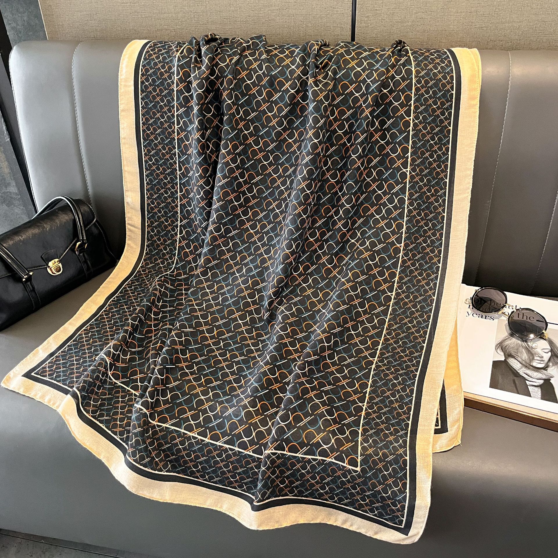 2025 면 및 린넨 스카프, 실크 스카프, 대외 무역 스카프, 느낌 프린트 기질 숄, 다용도 사진 장식, 고급 감각스토어 가기