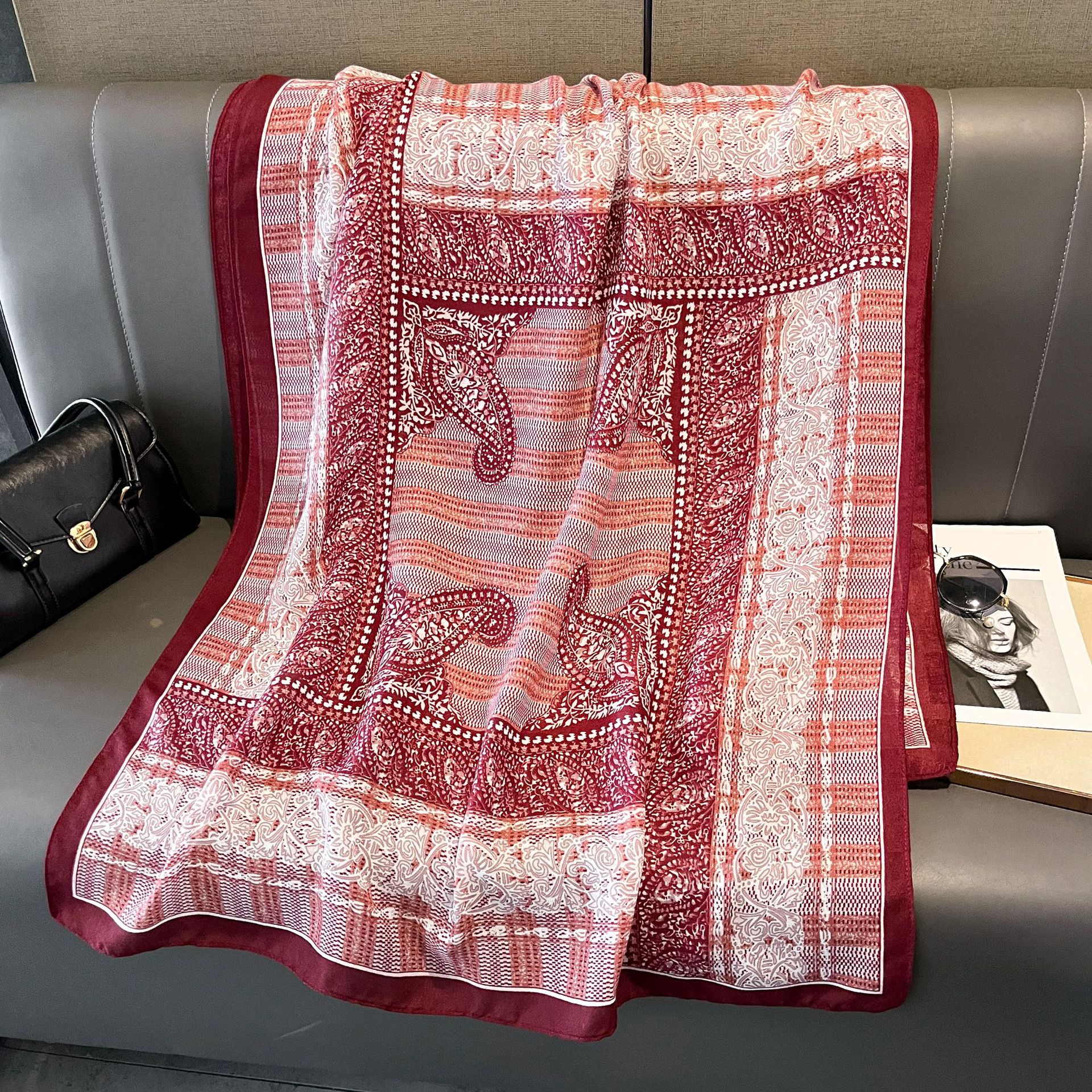 2025 면 및 린넨 스카프, 실크 스카프, 대외 무역 스카프, 느낌 프린트 기질 숄, 다용도 사진 장식, 고급 감각