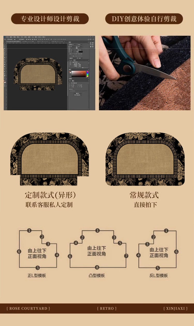 Dropshipping 가벼운 고급 복고풍 입구 문 바닥 매트 홈 미끄럼 방지 입구 문 거실 카펫 얼룩 방지 발 매트스토어 가기