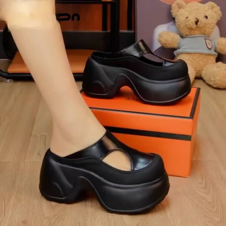 8cm 플랫폼 소프트 솔 패셔너블한 발가락이 빈 반슬리퍼 여성 2025 여름 신작 키가 작은 사람들을 위한 힐 없는 샌들스토어 가기