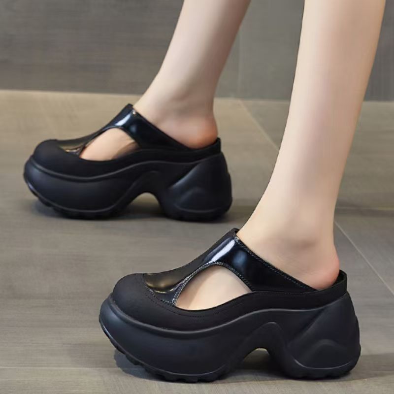 8cm 플랫폼 소프트 솔 패셔너블한 발가락이 빈 반슬리퍼 여성 2025 여름 신작 키가 작은 사람들을 위한 힐 없는 샌들
