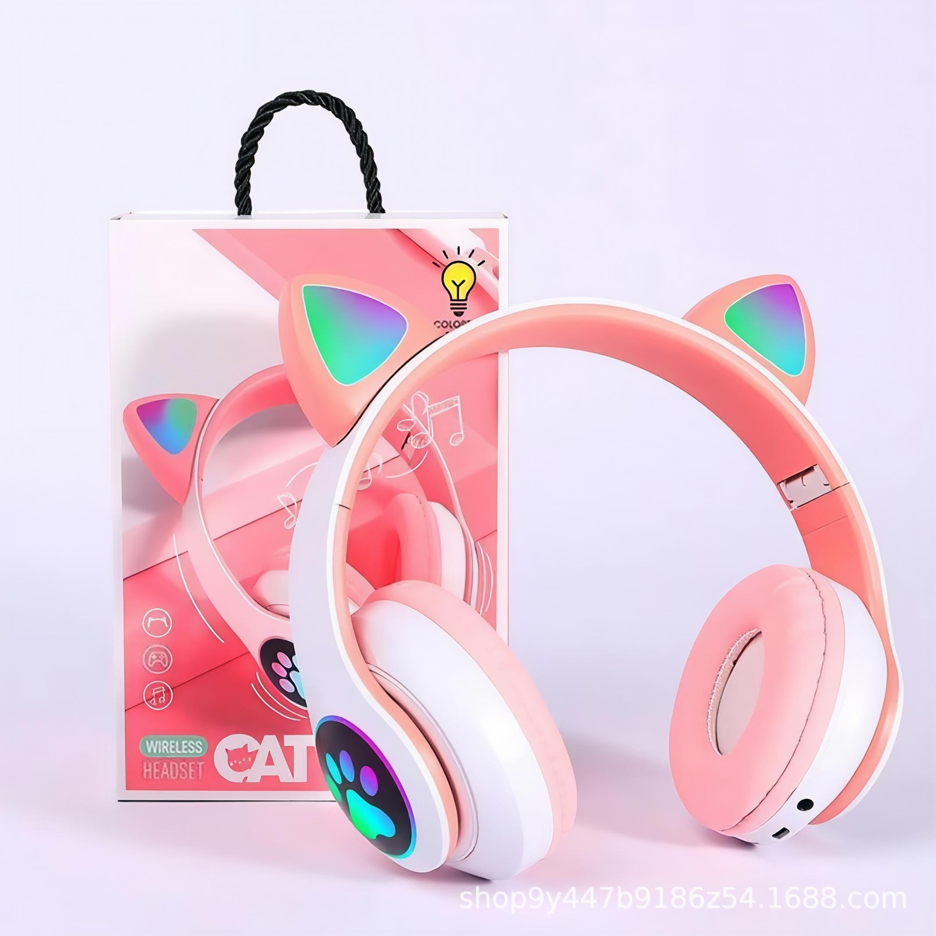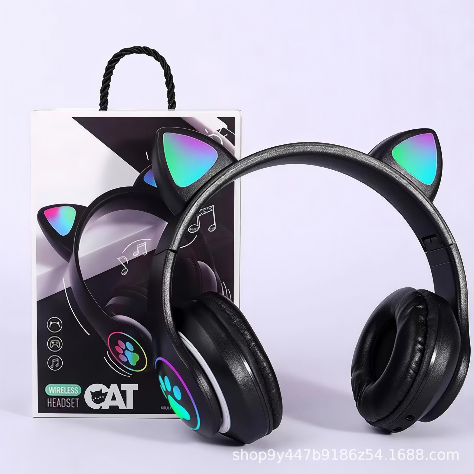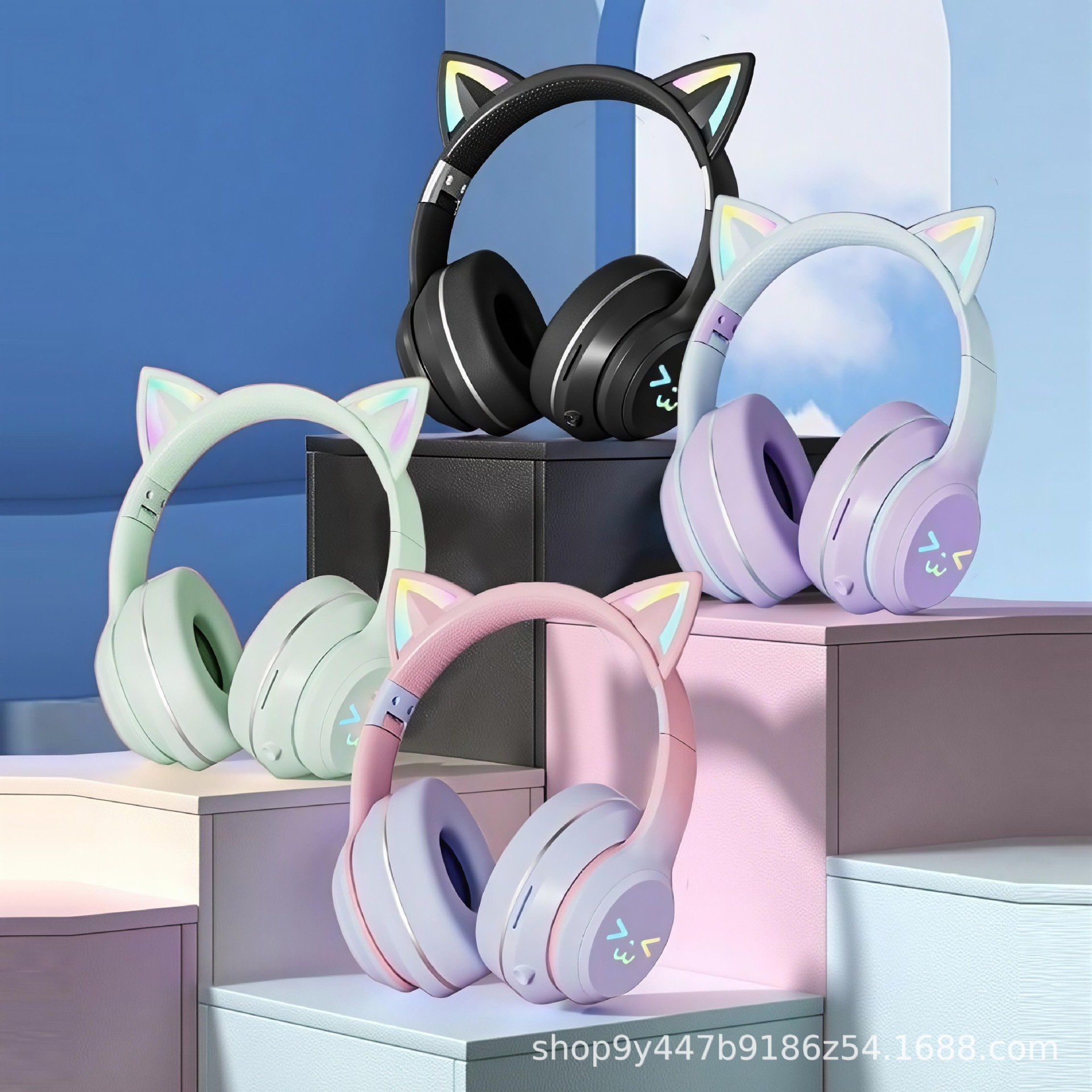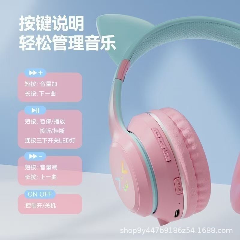 국경 간 인기 618 스팟 고양이 귀 그라데이션 빛나는 헤드 장착형 무선 블루투스 헤드셋 접이식 스포츠 헤드셋스토어 가기