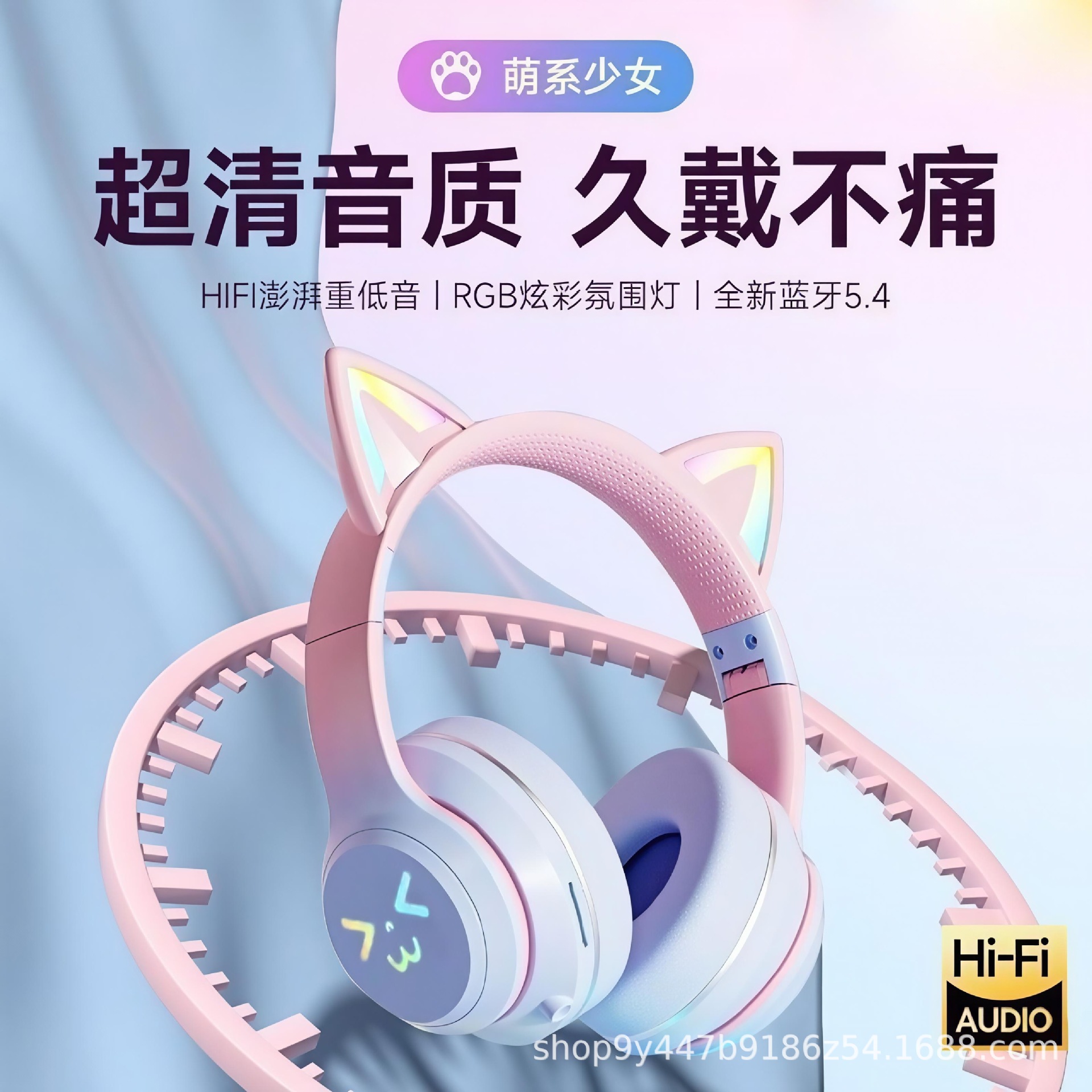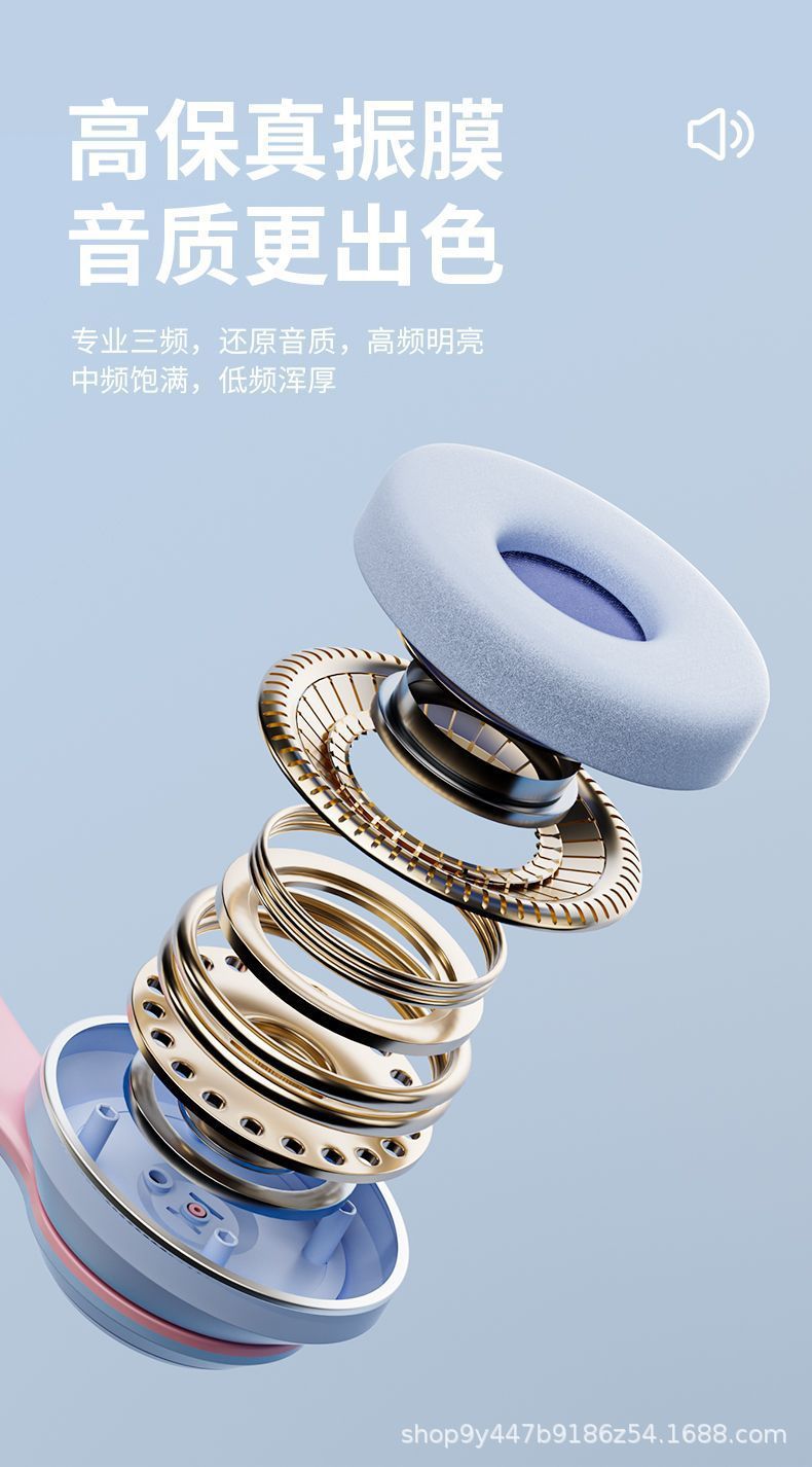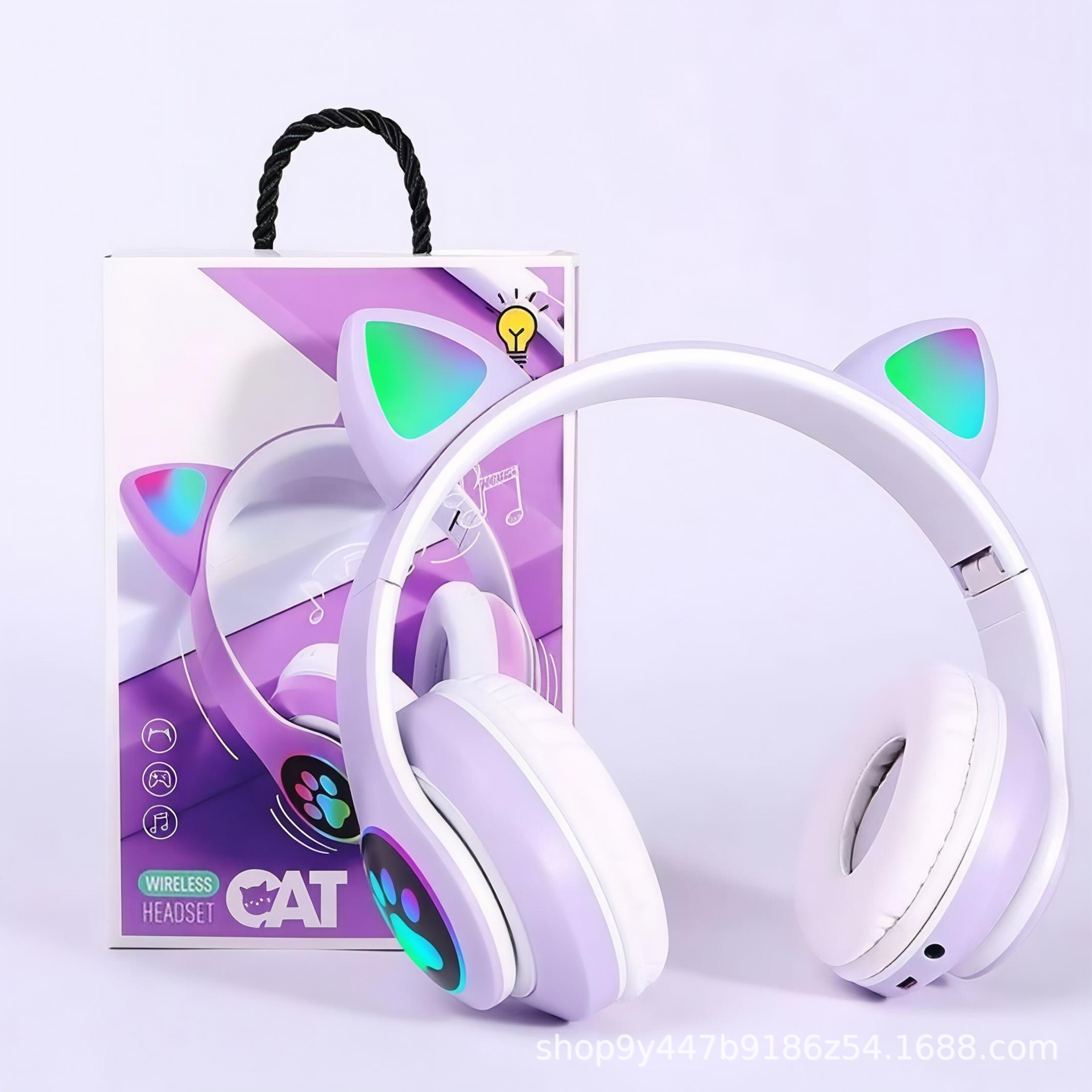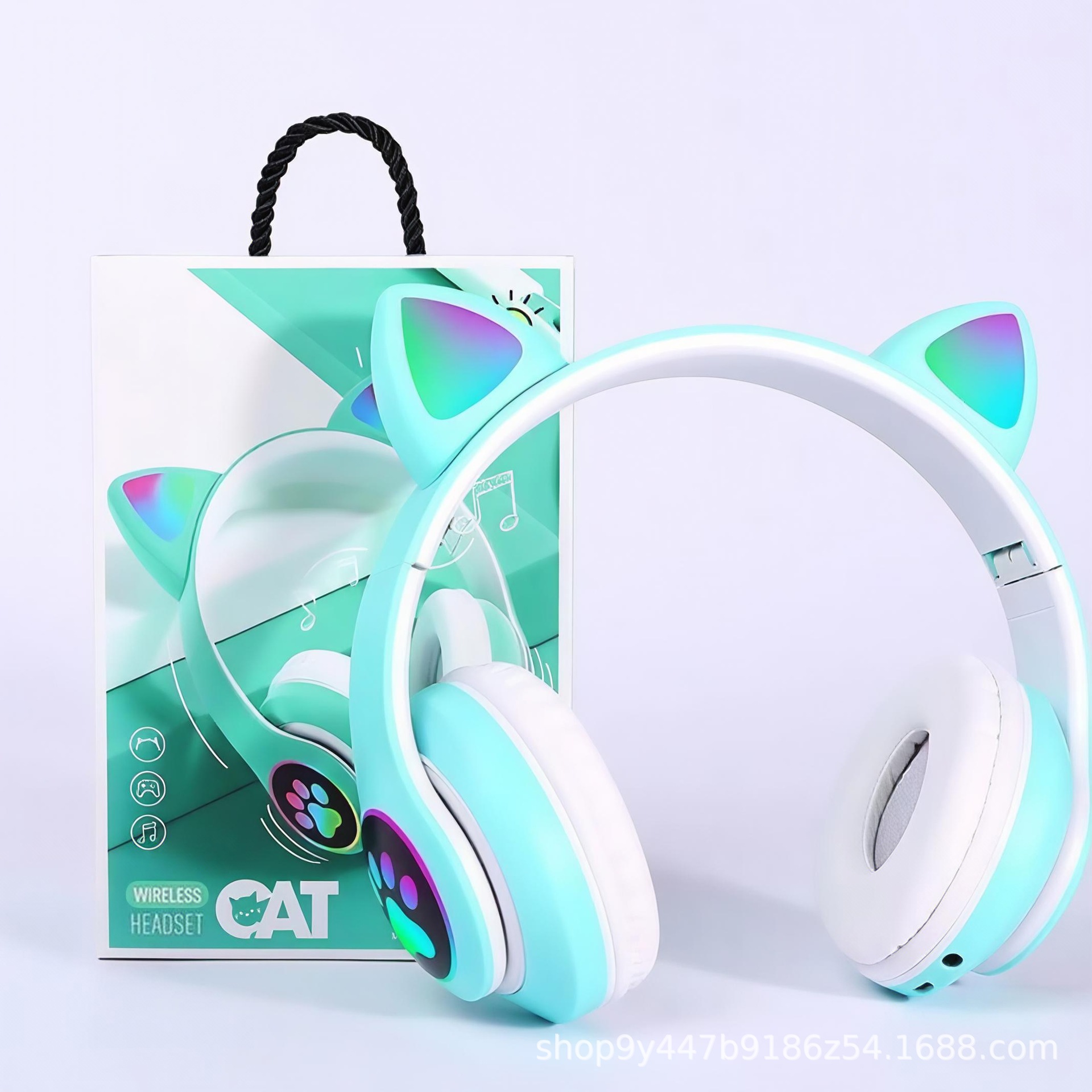 국경 간 인기 618 스팟 고양이 귀 그라데이션 빛나는 헤드 장착형 무선 블루투스 헤드셋 접이식 스포츠 헤드셋스토어 가기