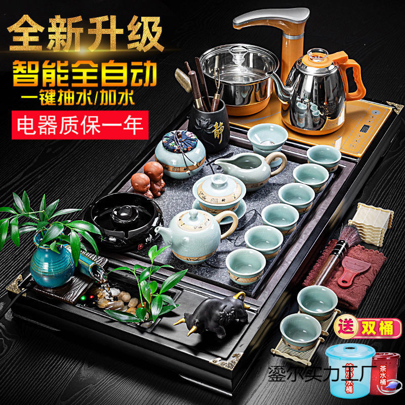 • Ge Kiln Bamboo Rhythm 자동 대형 세트 + 흐르는 창 4-in-1 차 트레이