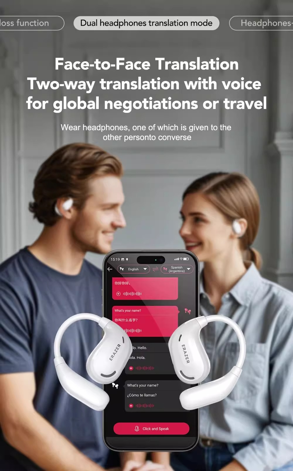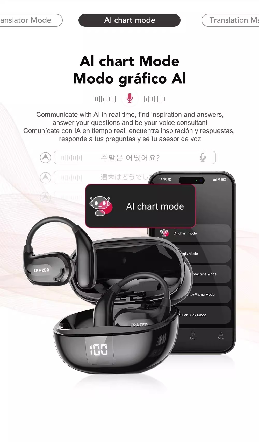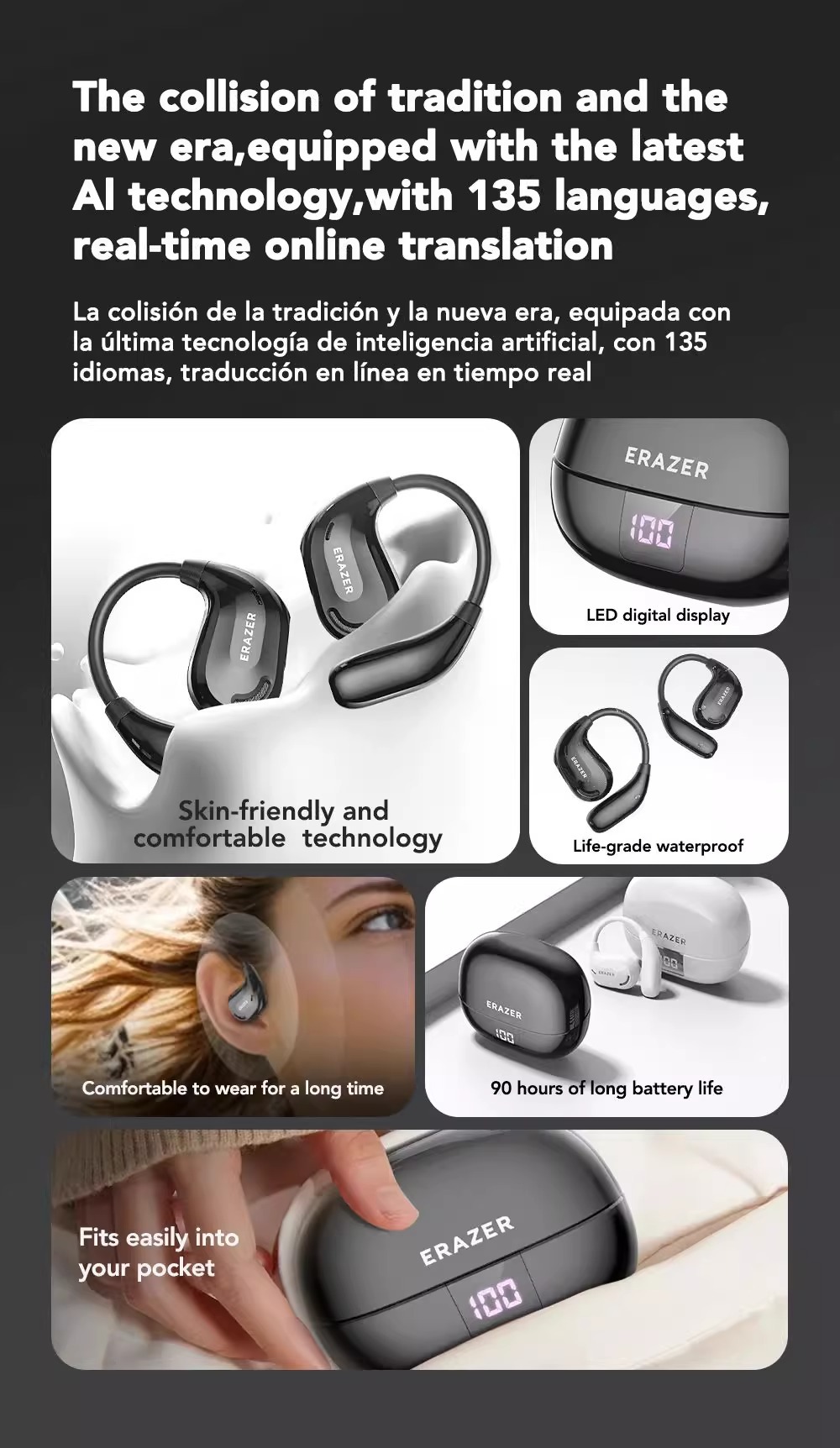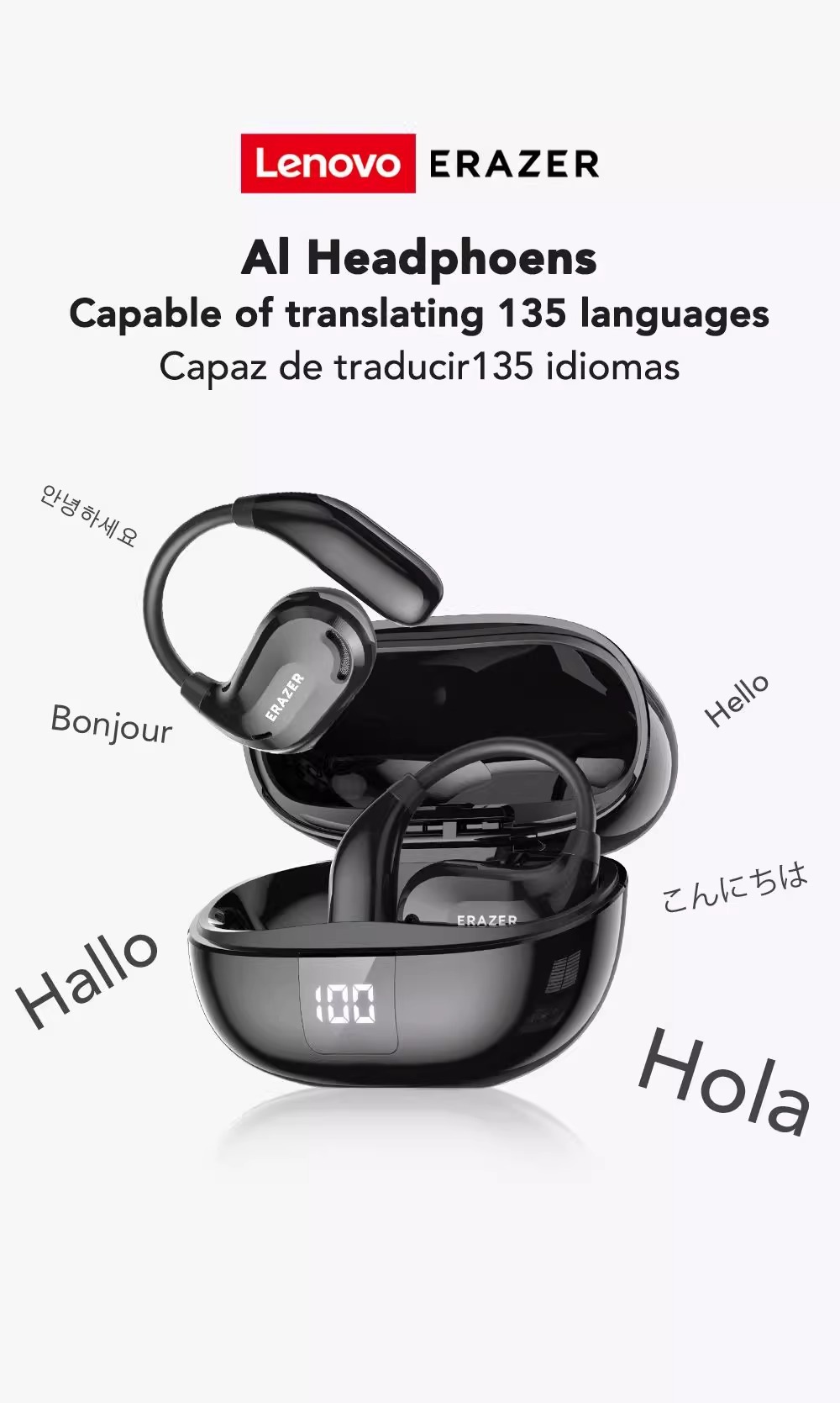 국경을 넘는 신형 이능자 블루투스 이어폰 XT66pro 비삽입형 귀걸이형 레노버 AI 번역 무선 이어폰스토어 가기