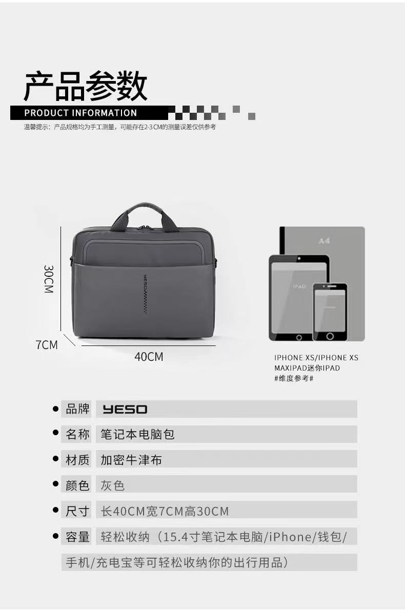 YESO 노트북 가방 심플하고 가벼운 애플 남성용 핸드백 태블릿 방수 라이너 숄더백 비즈니스스토어 가기