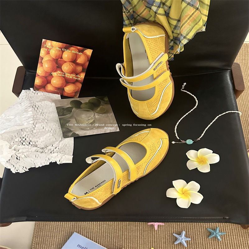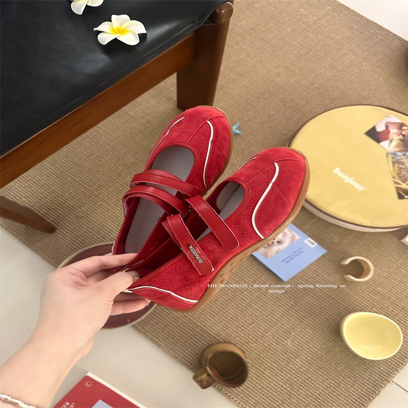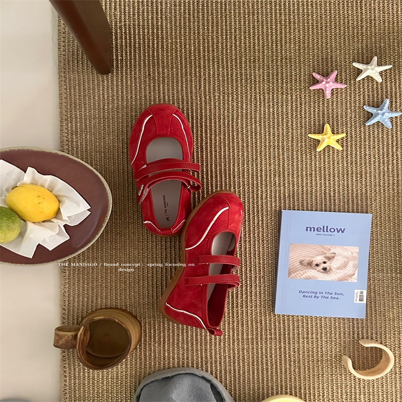 2025 새로운 여름 스타일 정품 가죽 벨크로 신발 스커트 비니 신발 레트로 레드 플랫 메리 제인 신발 여성용스토어 가기