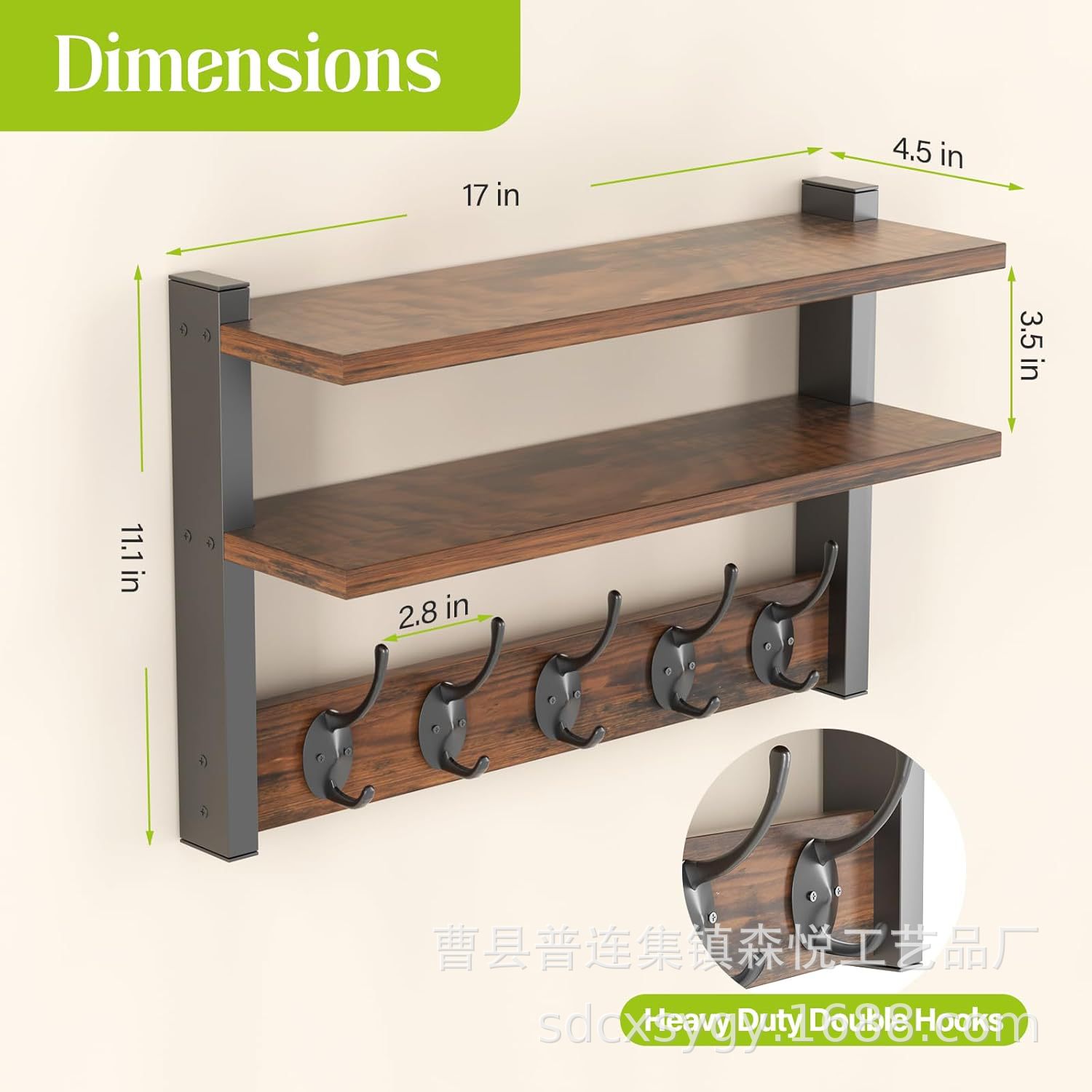 후크가 있는 나무 이중 벽걸이 걸이, 선반이 있는 벽걸이, 선반이 있는 벽, 코트 걸이, 나무 선반