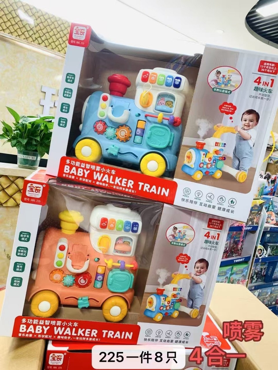 교육용 다기능 스프레이 소형 기차 워커 유모차 아기 슬라이딩 소년과 소녀를 위한 조기 교육 교육 장난감스토어 가기