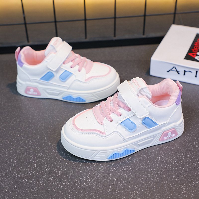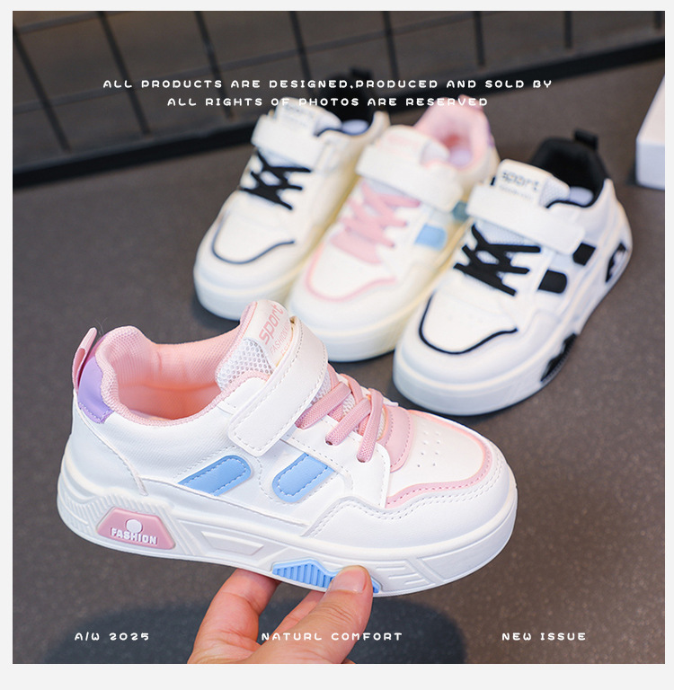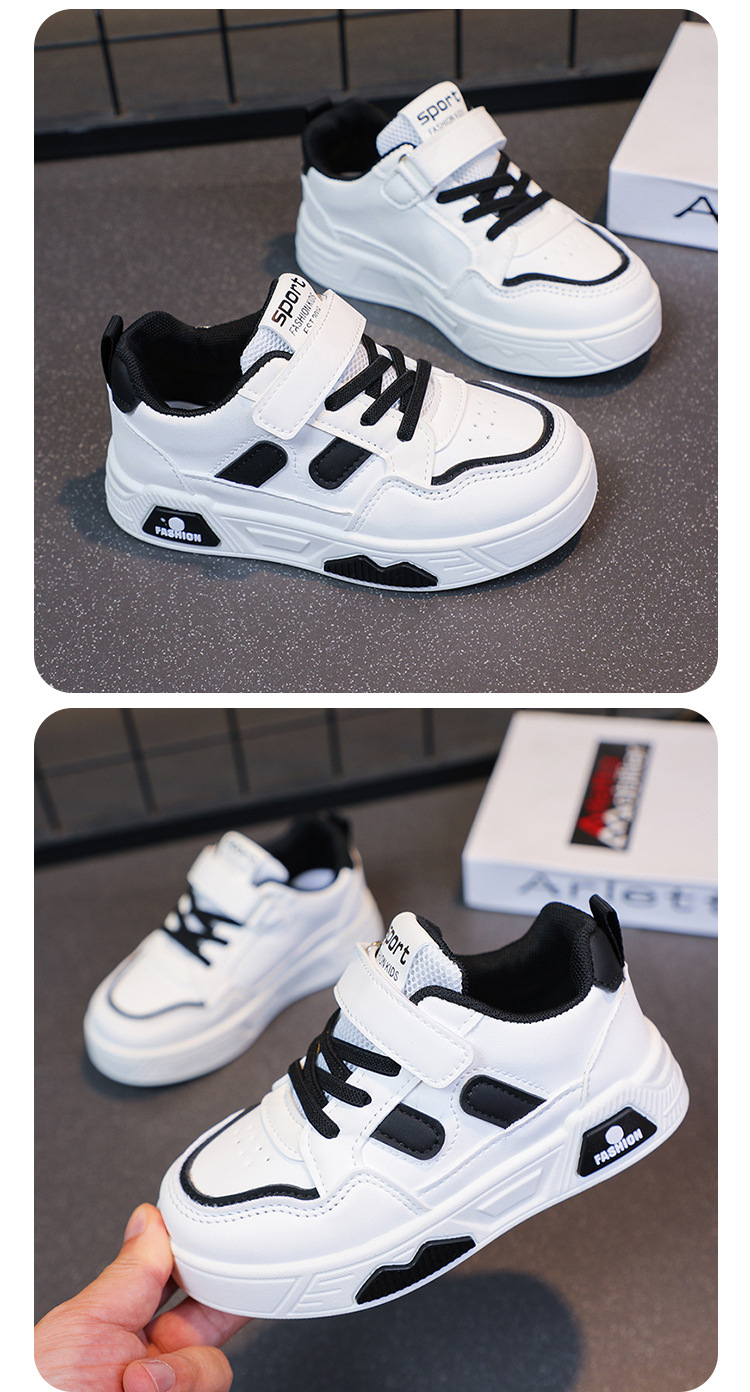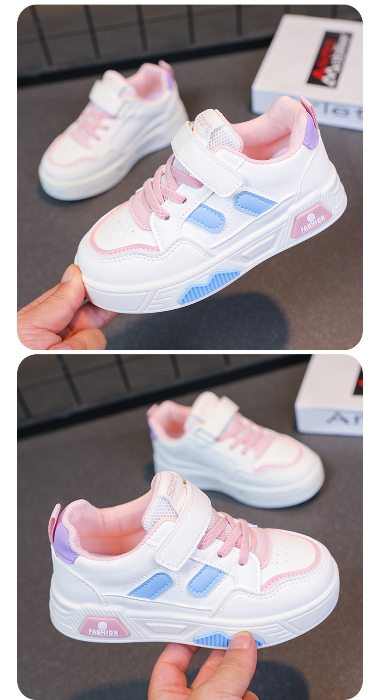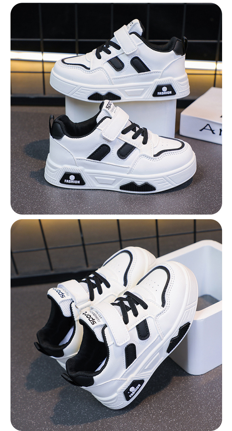 소년 신발 2025 봄과 가을 새로운 어린이 컬러 블록 운동화 가죽 미끄럼 방지 소녀 중대형 어린이 캐주얼 신발 대외 무역스토어 가기
