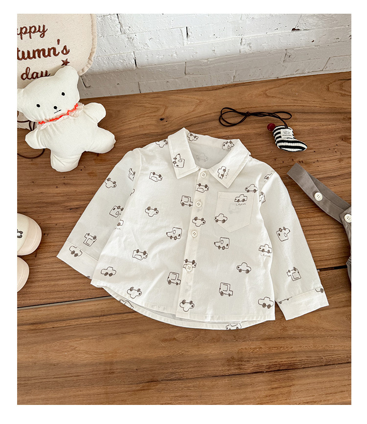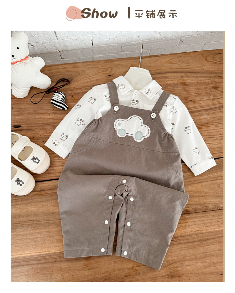 2025 새로운 가을 소년 셔츠 작업복 아기 정장 가을 의류 어린이 만화 옷 투피스 세트 카테고리 a스토어 가기