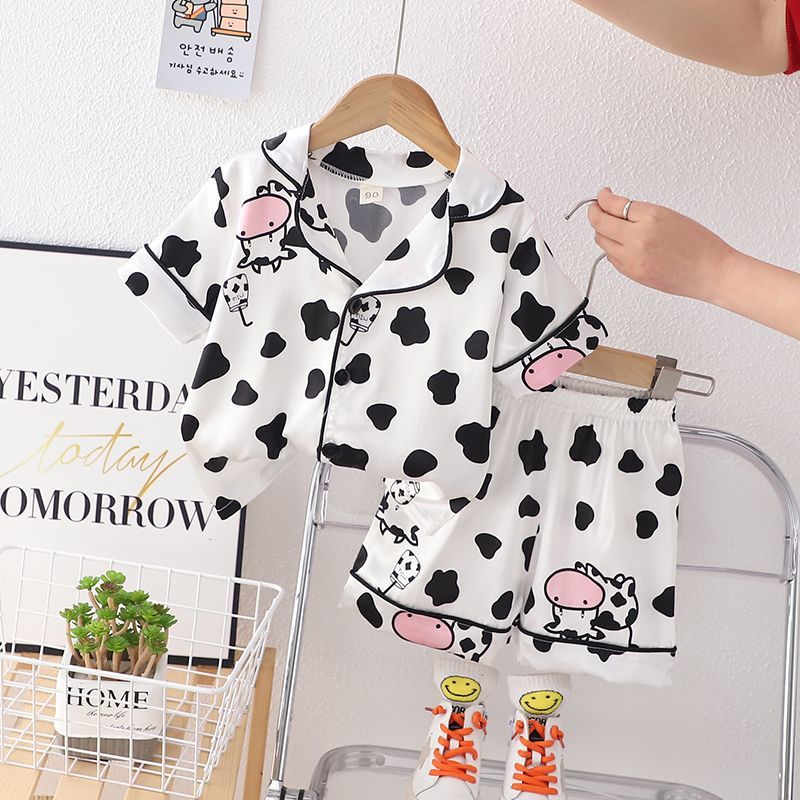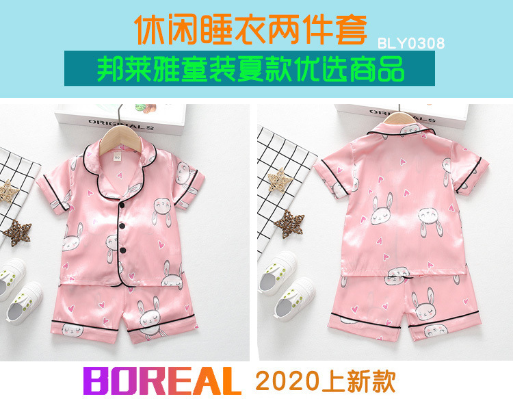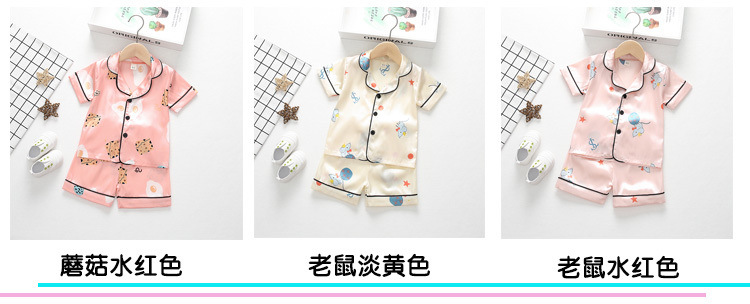 여름 어린이 잠옷, 남아 정장, 여아 모조 얼음 실크 반팔 얇은 여아 에어컨 가정복 투피스 세트스토어 가기