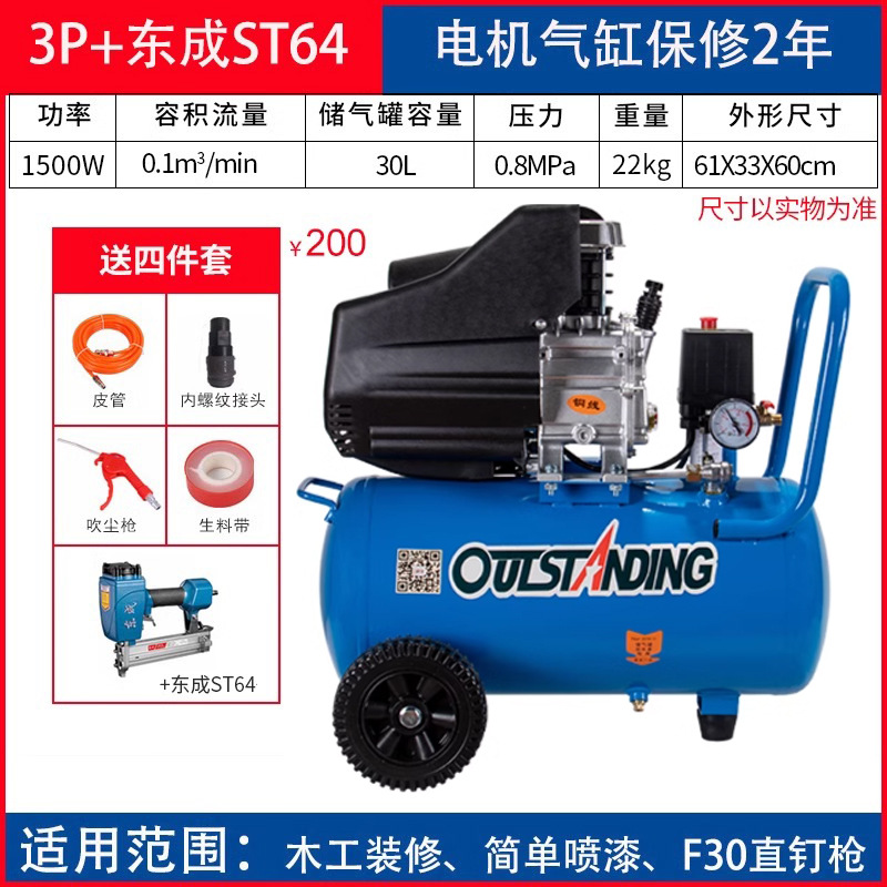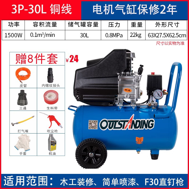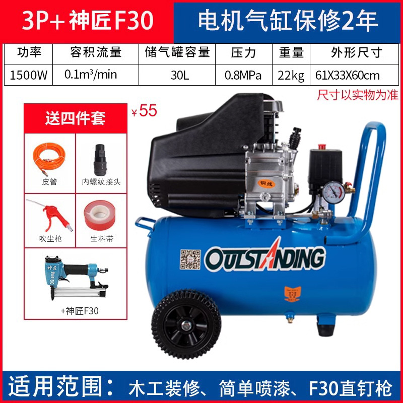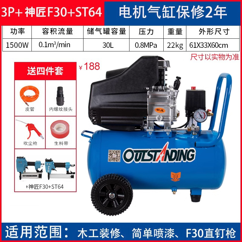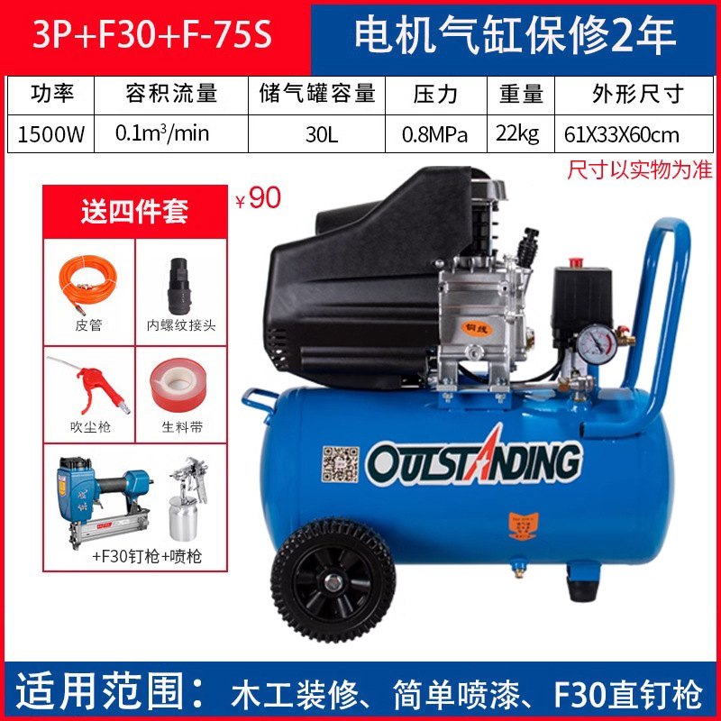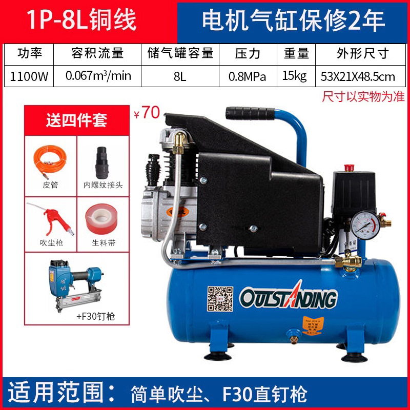 ATUS 고압 공기 압축기 소형 오일 및 가스 펌프 3P 목공 스파이크 건 스프레이 건 220V 휴대용 압축기