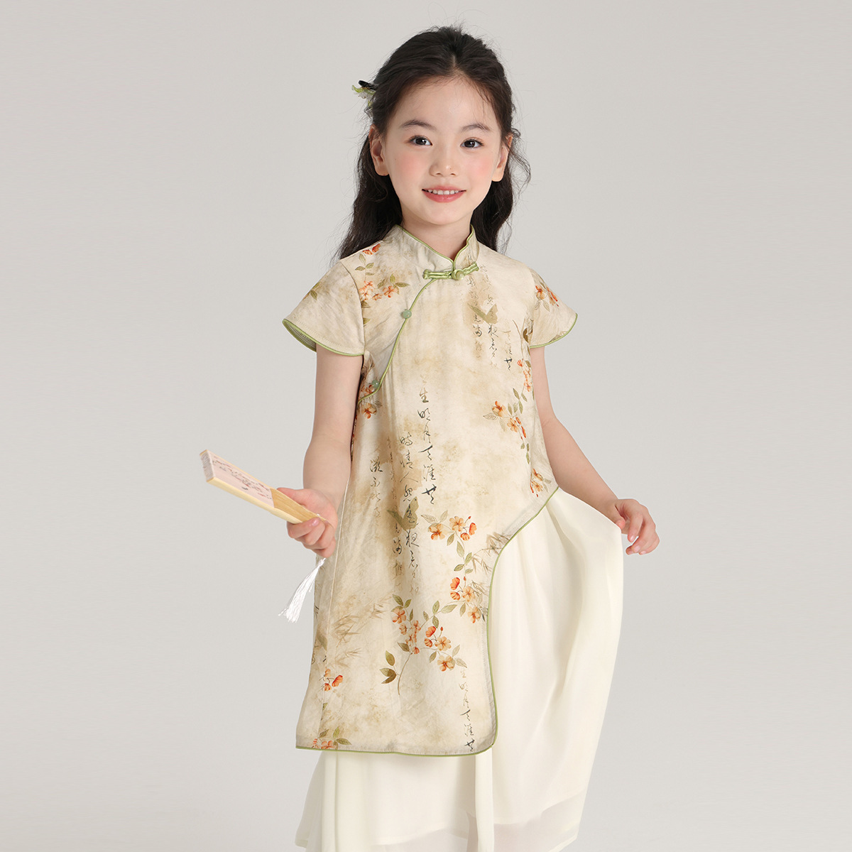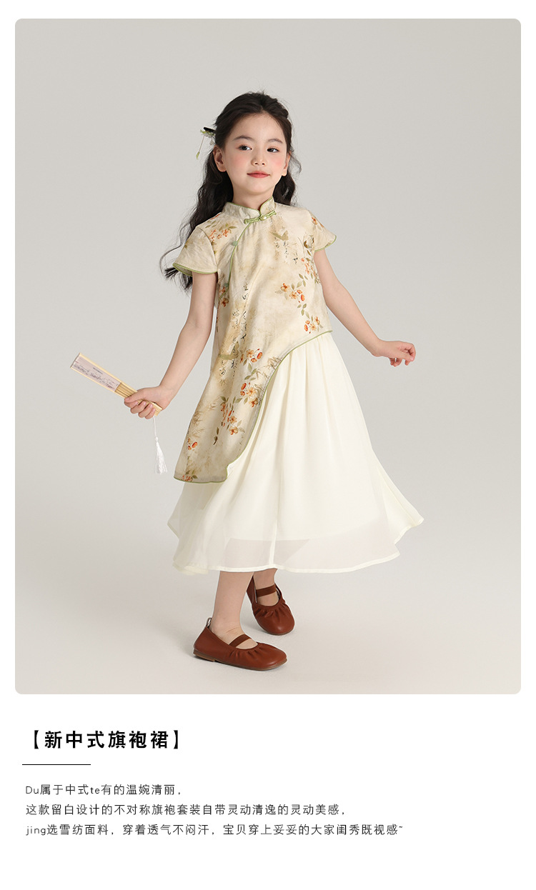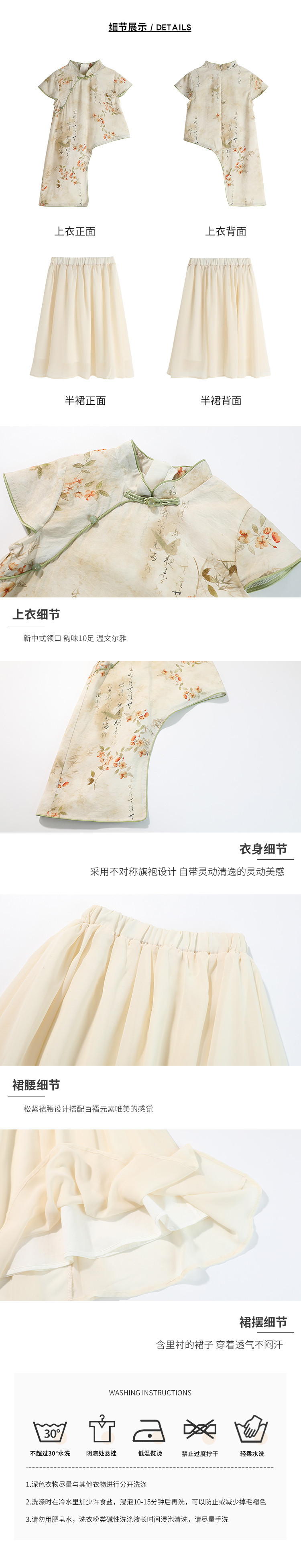 새로운 중국 스타일 여자 드레스 2024 여름 새로운 쉬폰 통기성과 편안한 여자 치파오 국가 스타일 투피스 세트