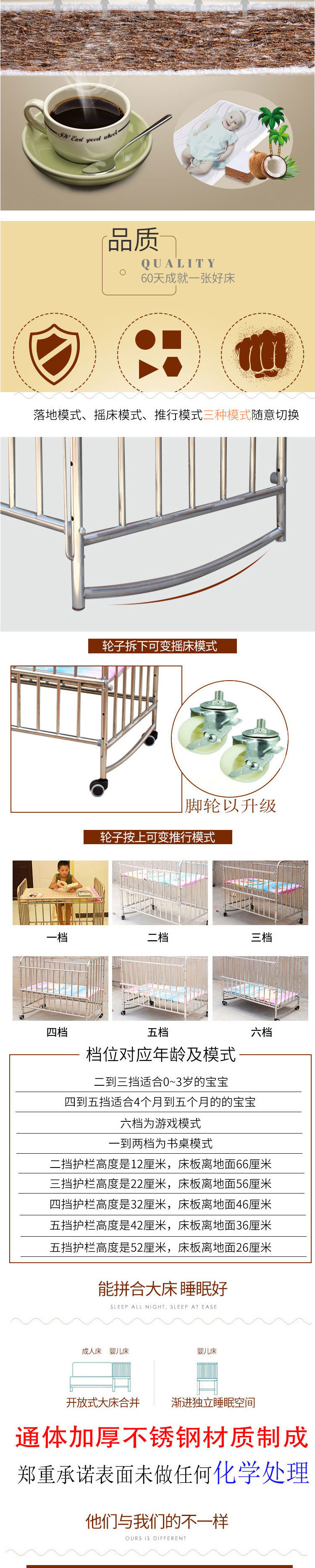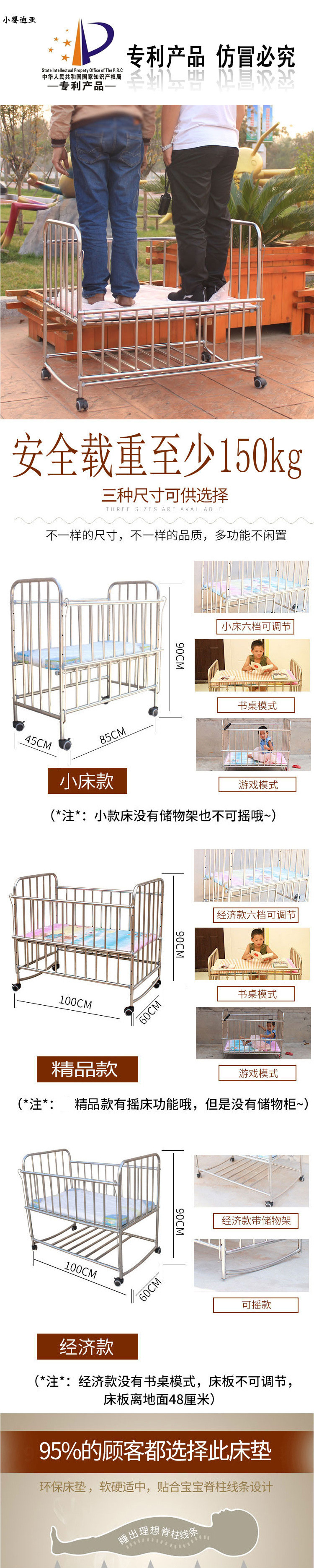 스테인레스 스틸 유아용 침대 접합 대형 침대 환경 친화적인 포름알데히드가 없는 다기능 흔들 침대 모기장이 있는 게임 침대스토어 가기