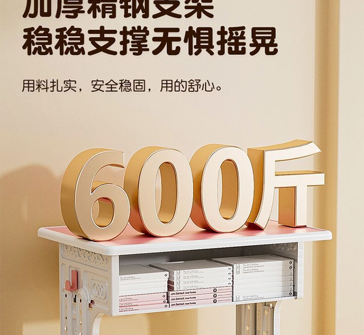 • 업그레이드된 5강 기둥 테이블 + 척추 보호 소프트 의자 [복층 높은 책장] 사쿠라 핑크