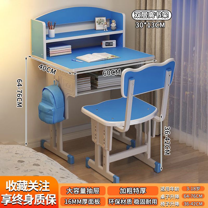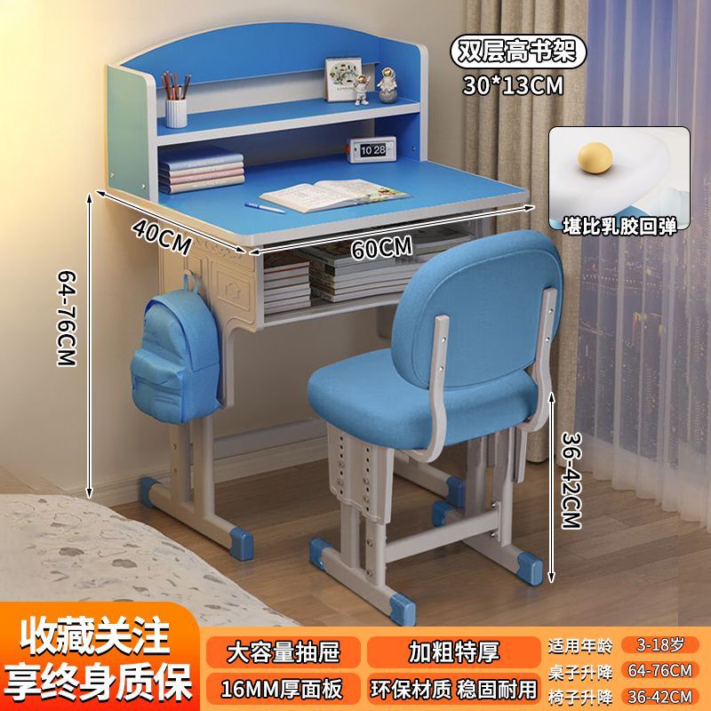 • 업그레이드된 5강 기둥 테이블 + 척추 보호 소프트 의자 [복층 높은 책장] 스카이블루