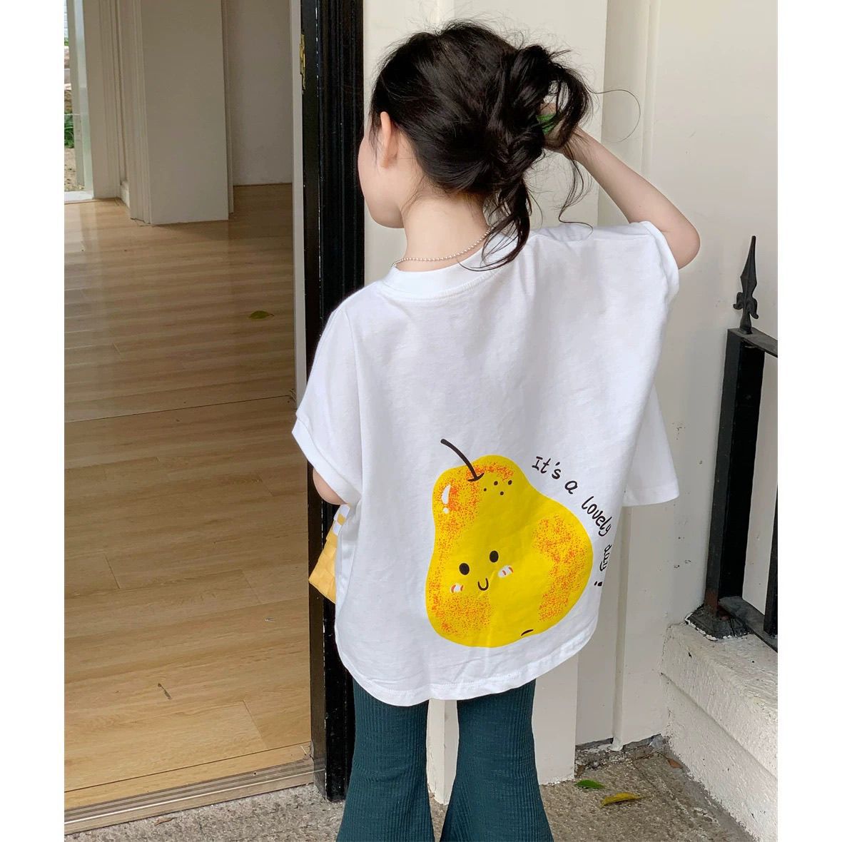 여자 만화 여름 2025 새로운 스타일 어린이 여름 옷 아기 소녀 인쇄 티셔츠 플레어 바지 투피스 세트스토어 가기