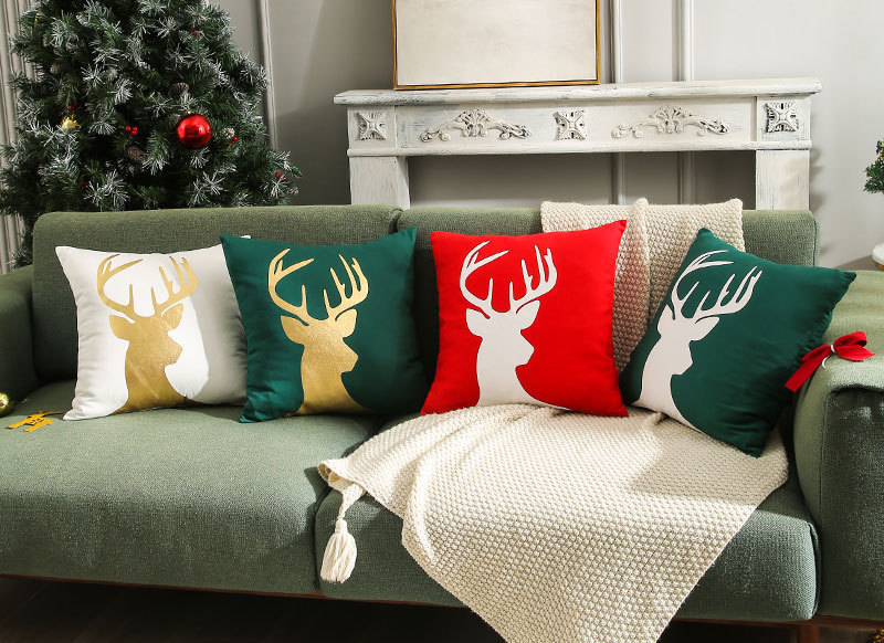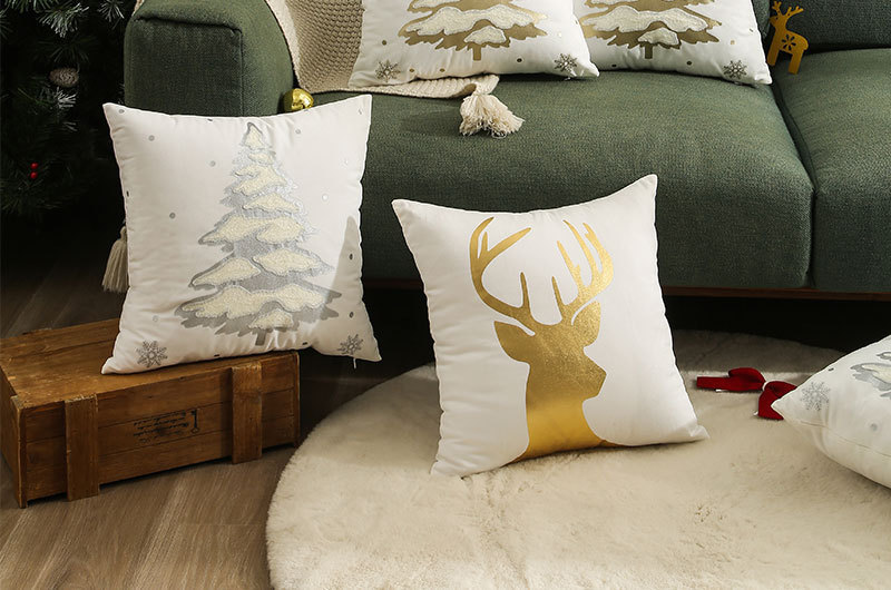 45 크리스마스 트리 쿠션 핫 판매 핫 스탬핑 눈송이 베개 커버 크로스 보더 45 가을 겨울 세트 자수스토어 가기