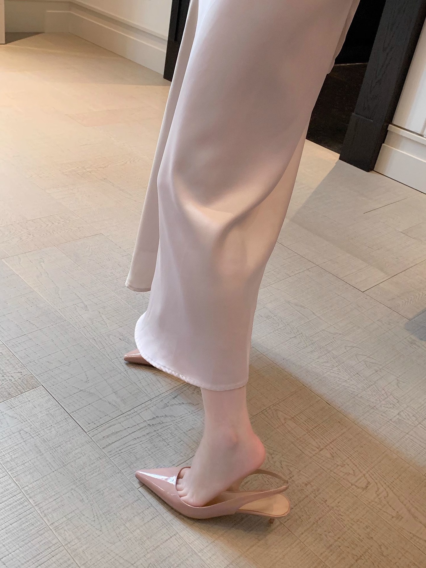 패턴 제작 프랑스 스타일 Zhou Ziran 같은 스타일의 아름다운 캐주얼 백 샌들 여성용 정품 가죽 밑창 스틸레토 슈즈