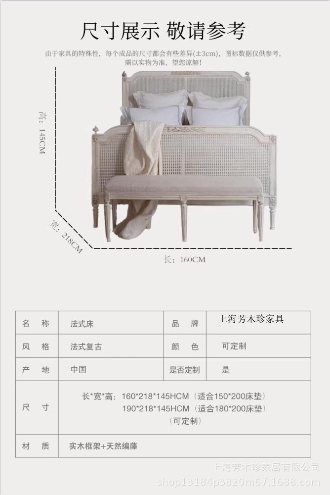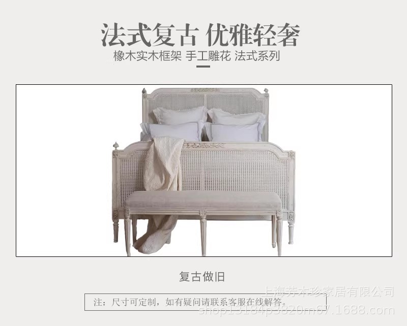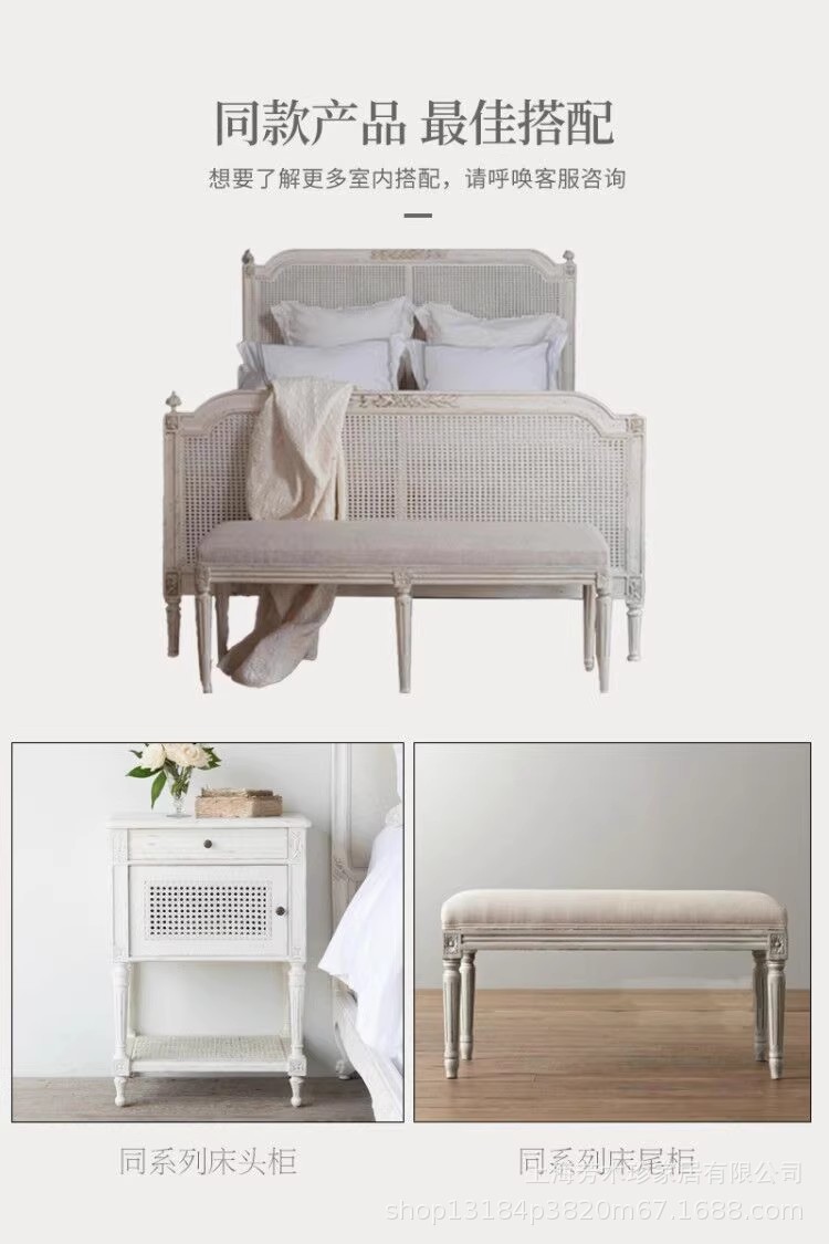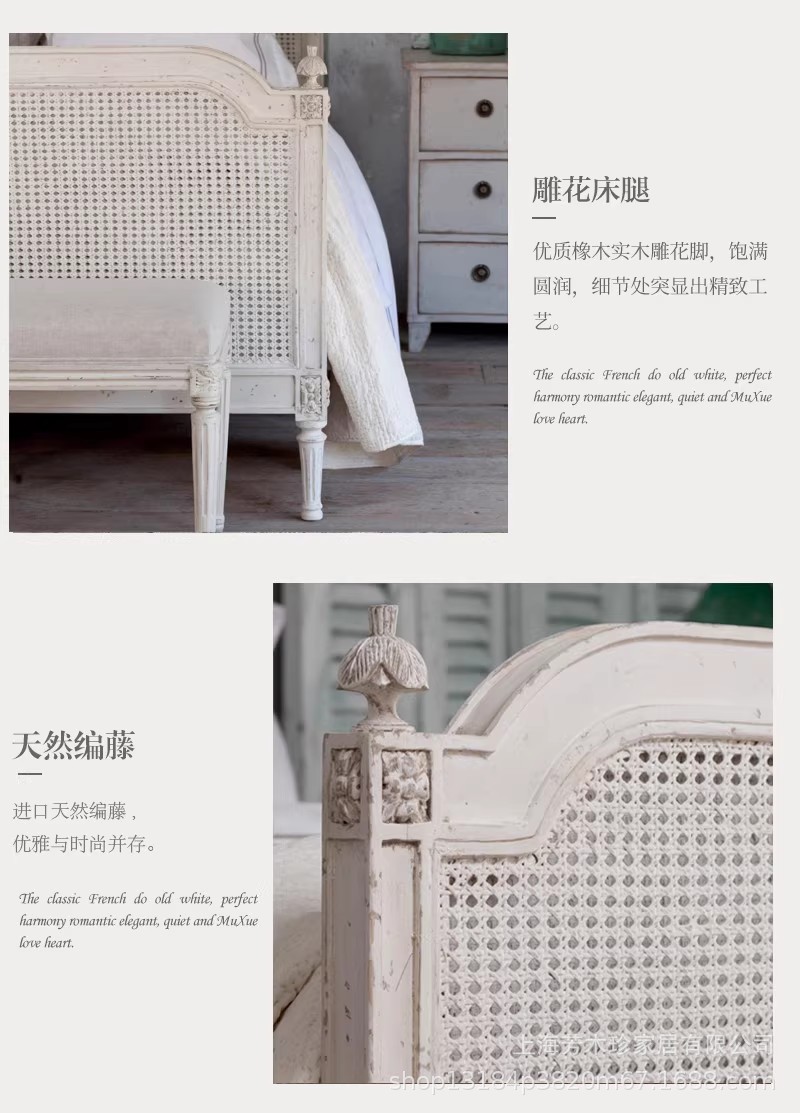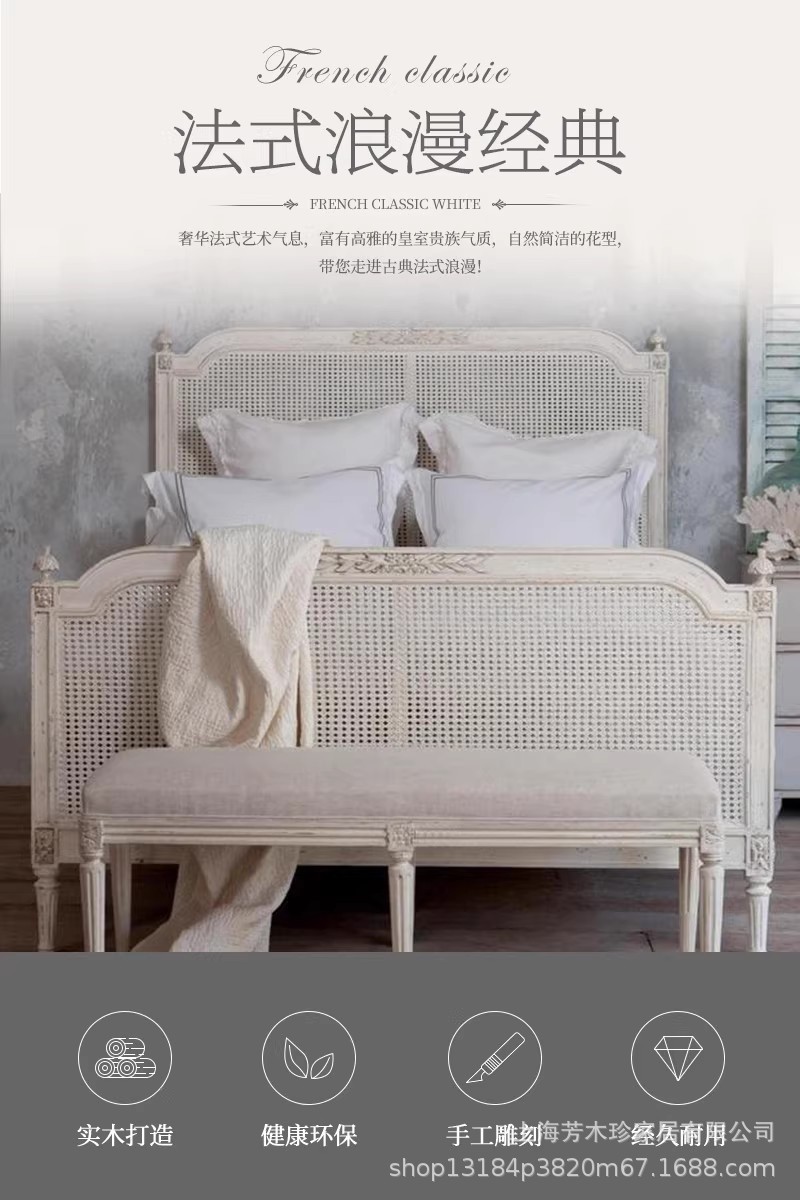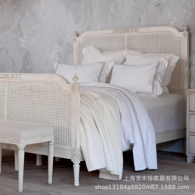 프랑스 복고풍 오래된 등나무 침대 미국 조각된 마스터 침실 단단한 나무 1.8m 더블 웨딩 침대 1.5 미터 공주 등나무 침대스토어 가기