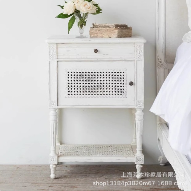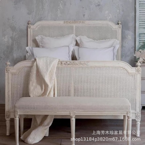 프랑스 복고풍 오래된 등나무 침대 미국 조각된 마스터 침실 단단한 나무 1.8m 더블 웨딩 침대 1.5 미터 공주 등나무 침대