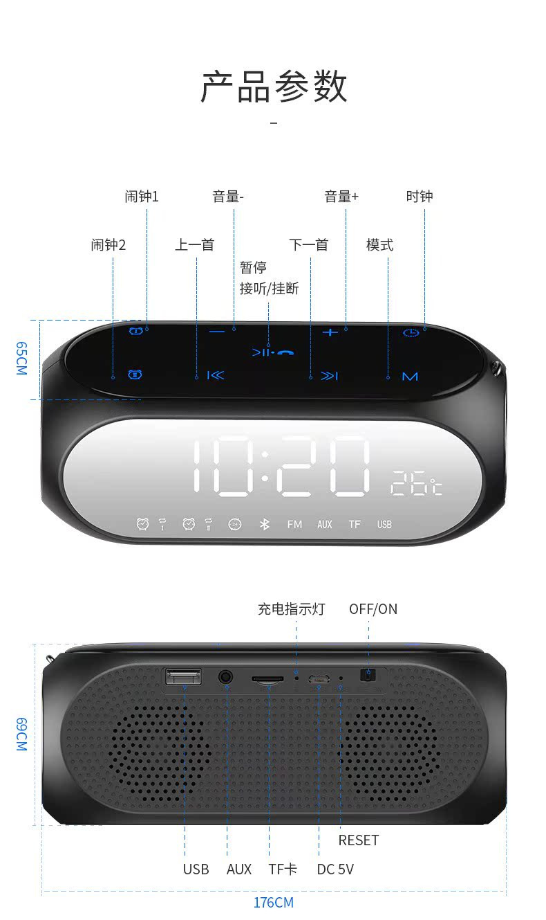 소니 에릭슨 S69 무선 블루투스 스피커 야외 대용량 e-스포츠 게임 서브우퍼 알람 시계 다기능 소형 스피커