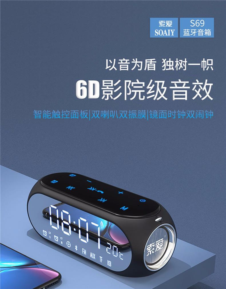 소니 에릭슨 S69 무선 블루투스 스피커 야외 대용량 e-스포츠 게임 서브우퍼 알람 시계 다기능 소형 스피커스토어 가기