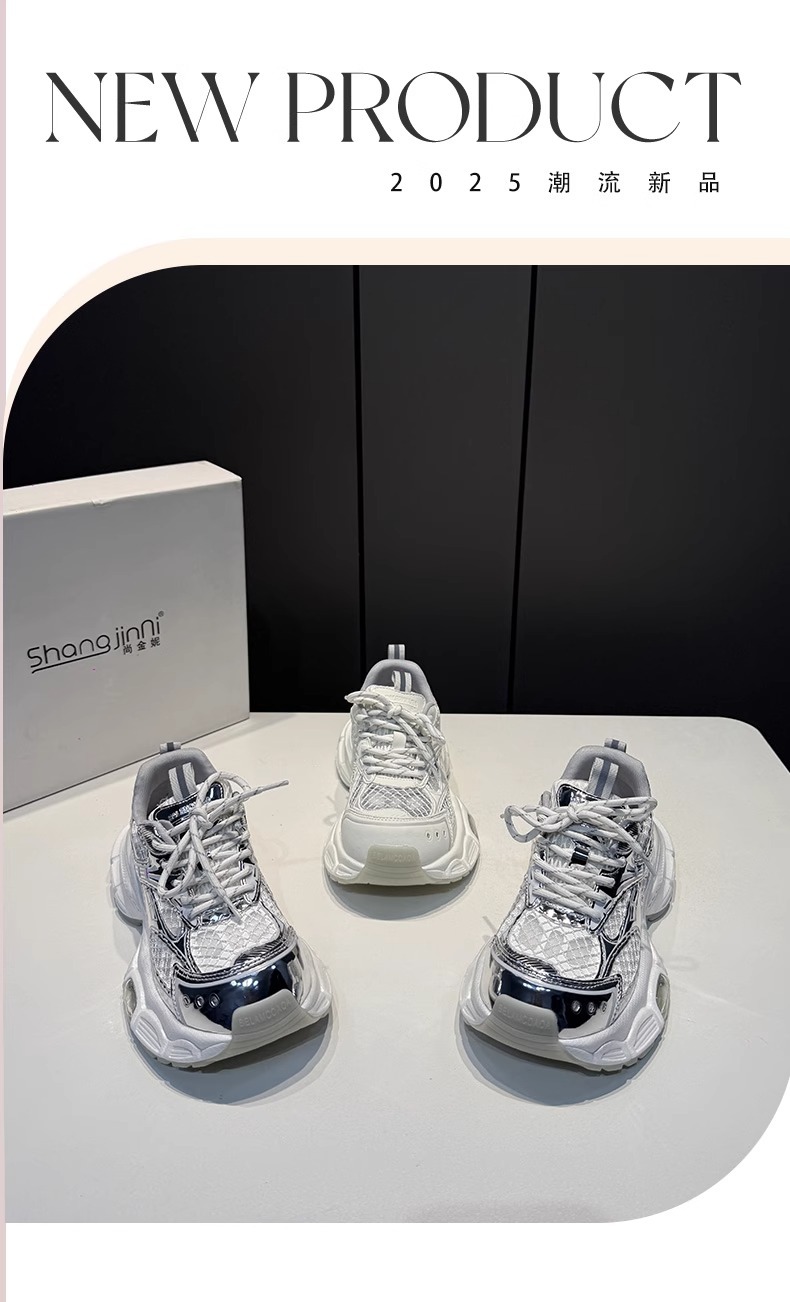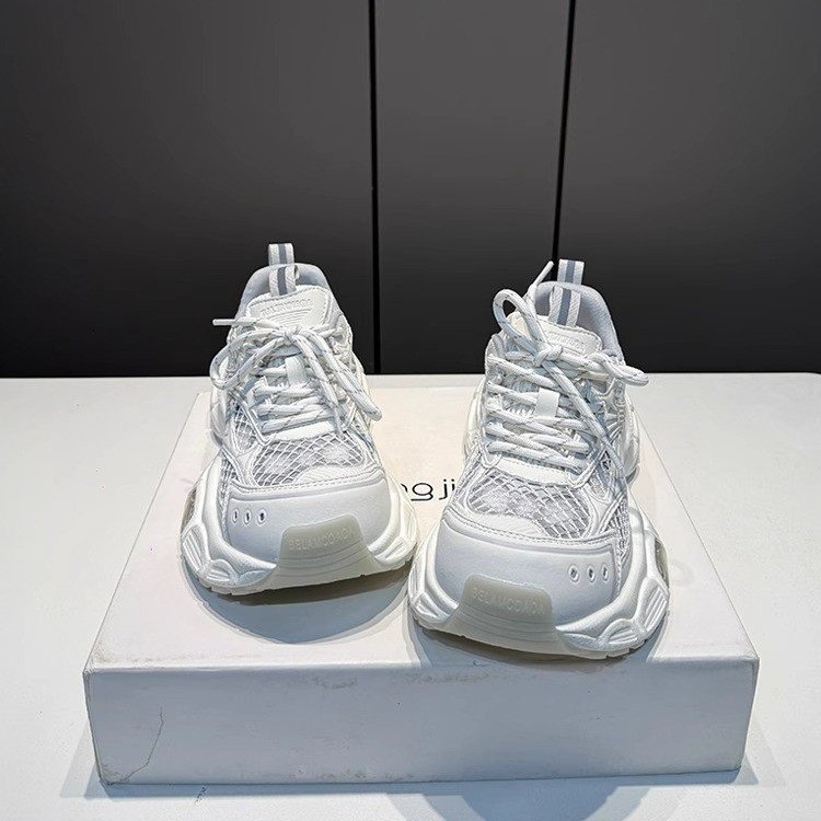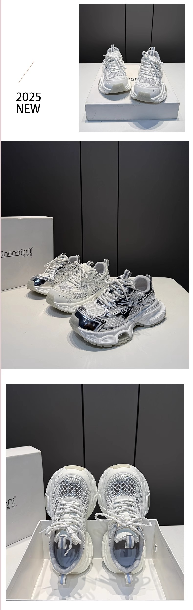 2025년 여름 신상 두꺼운 밑창 얇은 메쉬 통기성 여성용 아빠 신발, 작은 사람들을 위한 다용도 에어 쿠션 스트랩 캐주얼 신발스토어 가기