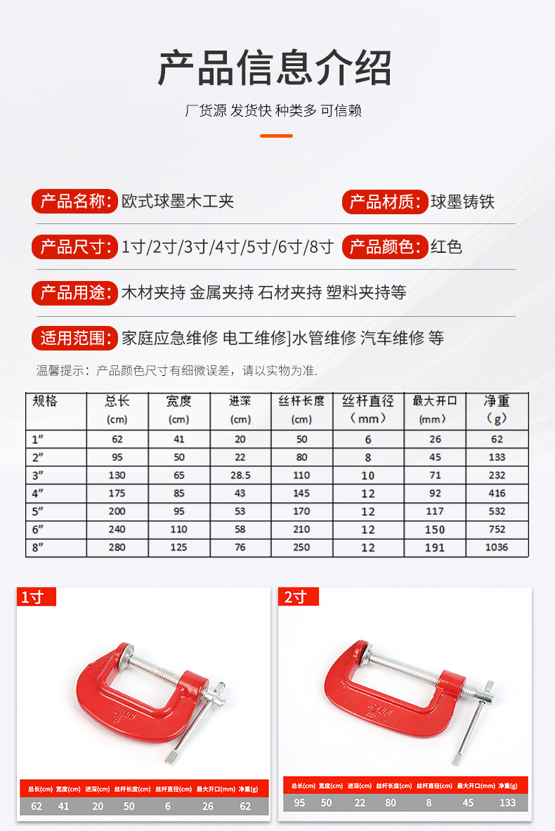 유럽식 연철 목공 클램프, 두꺼운 G자형 목공 클램프, 다기능 고정 수공구, 목공 클램프, 도어 및 창 클램프스토어 가기