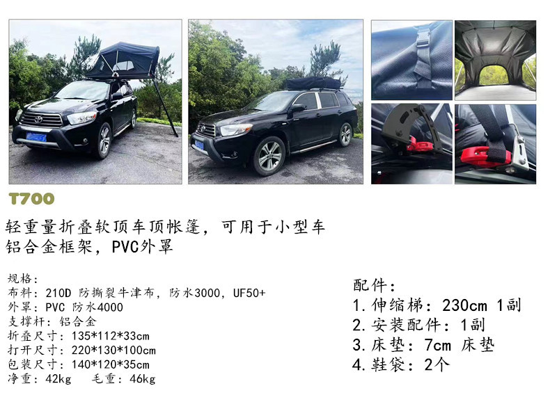 야외 자동차 PVC 외부 커버 접이식 지붕 텐트 넓은 공간 자체 운전 여행 야외 캠핑카 지붕 텐트스토어 가기