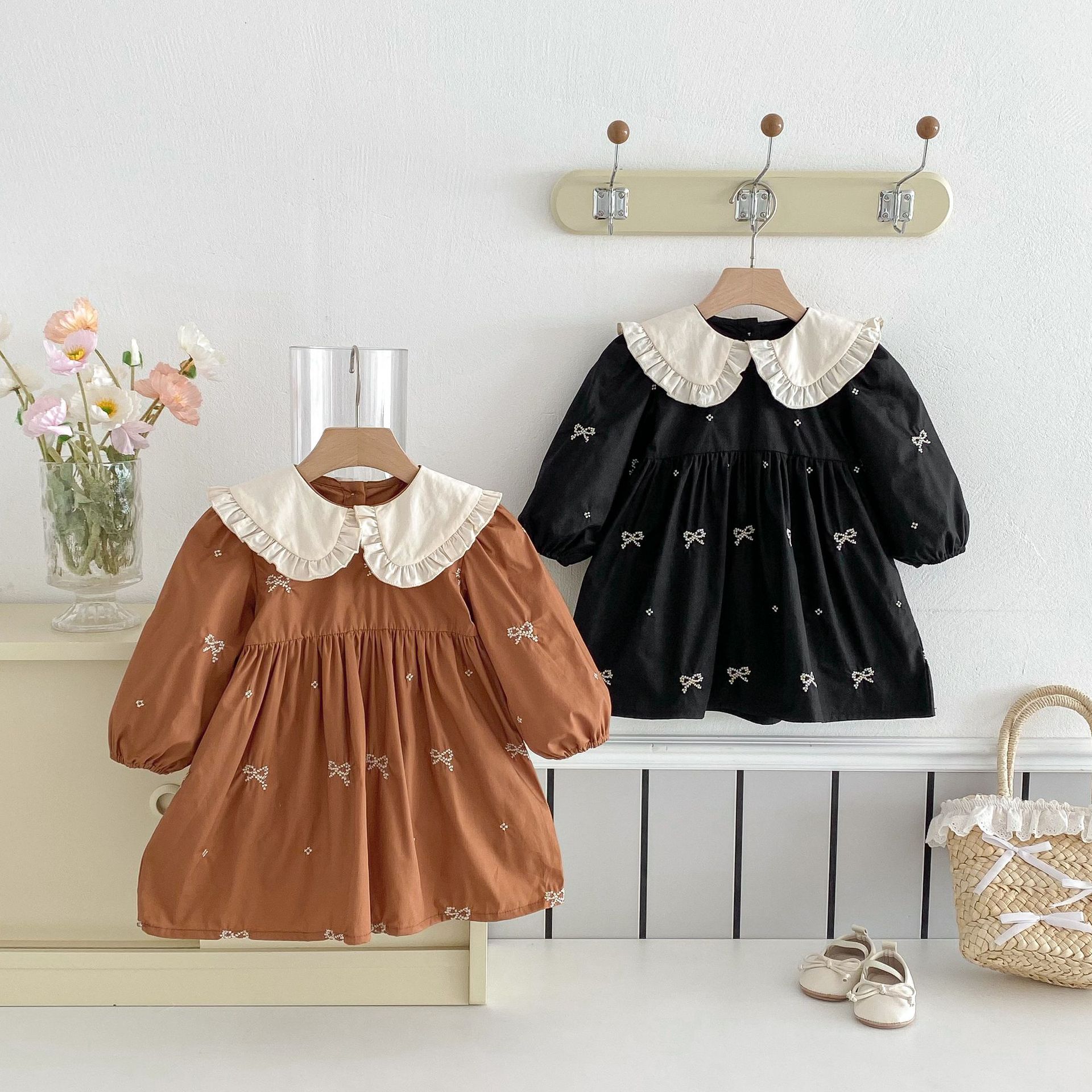 여자 드레스 가을 한국 스타일 옷깃 복고풍 자수 아기 소녀 공주 봄, 가을 아동 의류 스커트스토어 가기