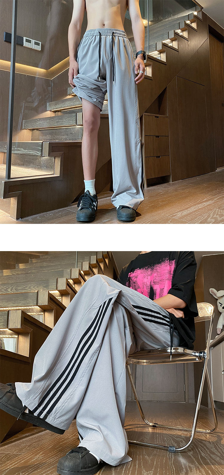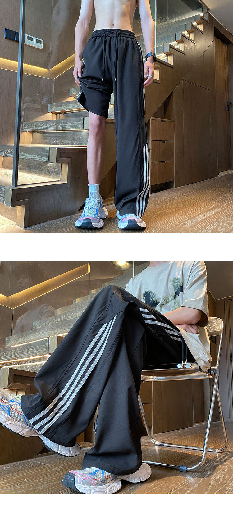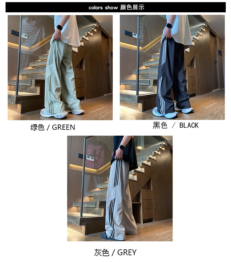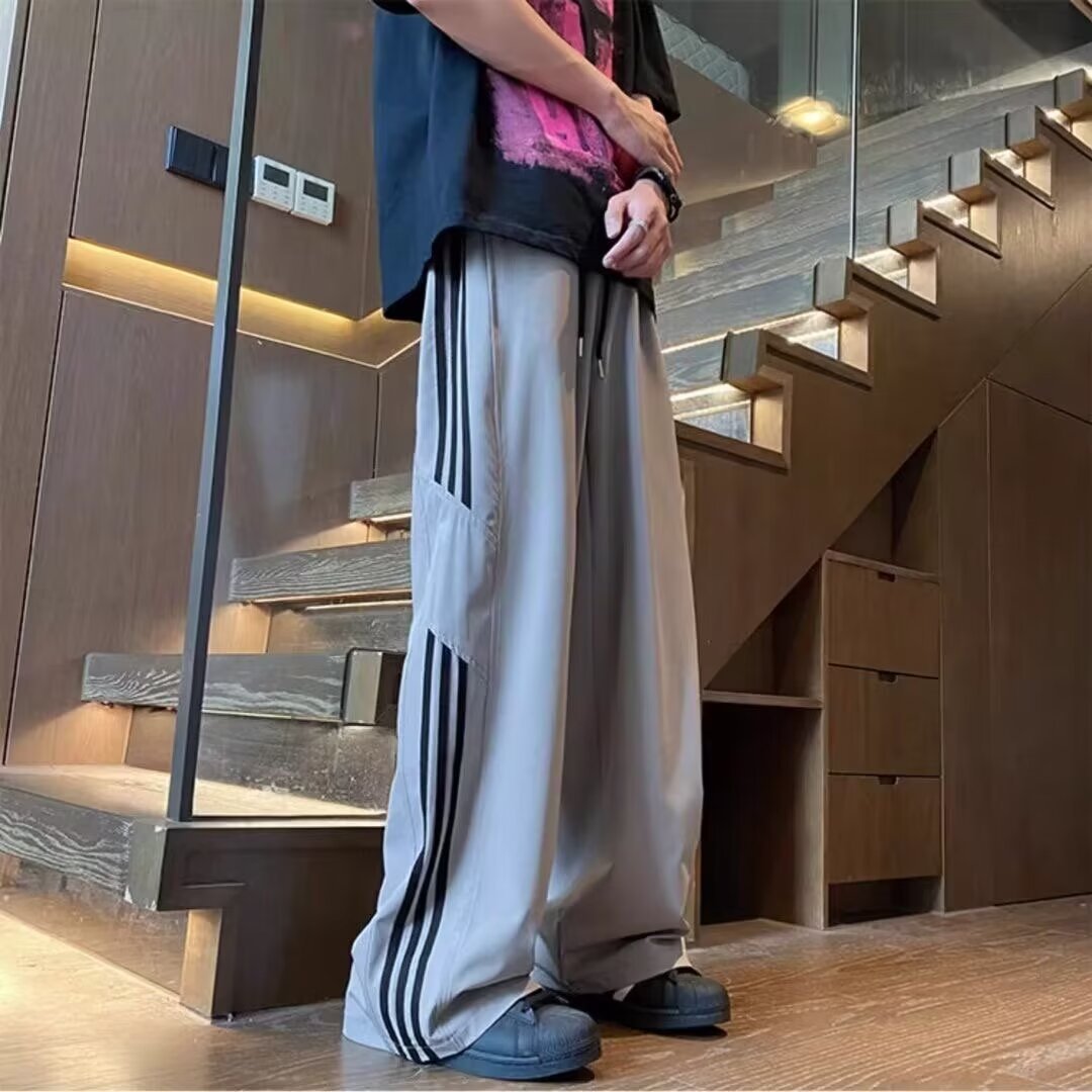 아이스 실크 속건성 바지 남성 여름 얇은 미국식 와이드 레그 스웨트 팬츠 청소년 소년 루즈 캐주얼 바지