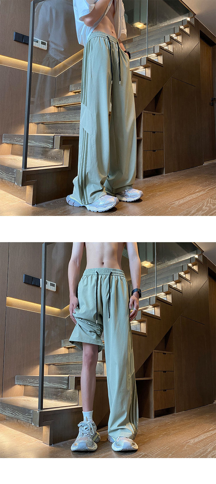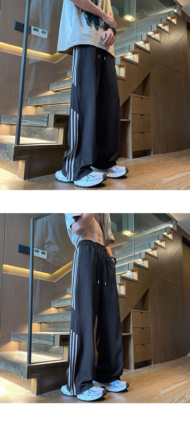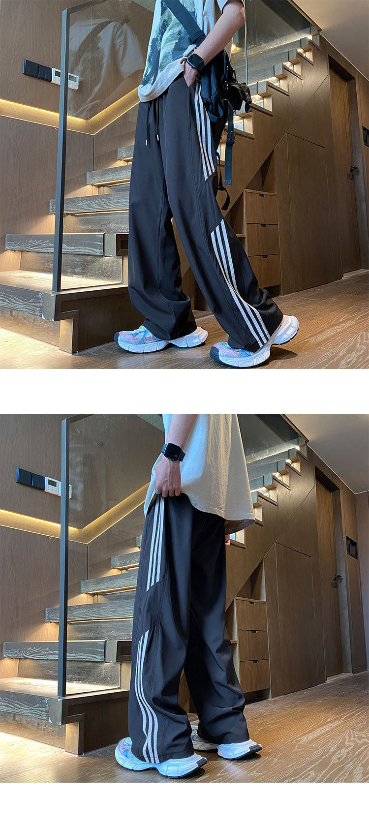 아이스 실크 속건성 바지 남성 여름 얇은 미국식 와이드 레그 스웨트 팬츠 청소년 소년 루즈 캐주얼 바지스토어 가기