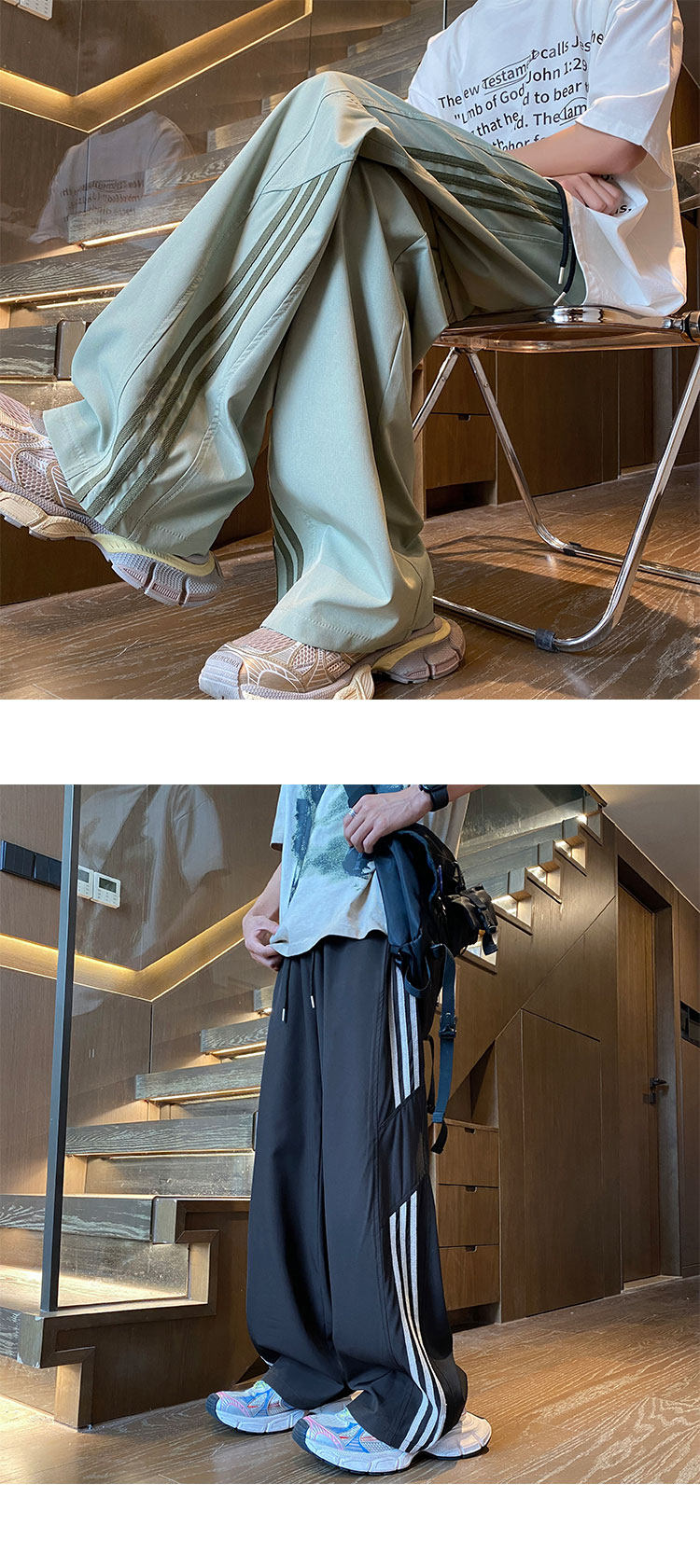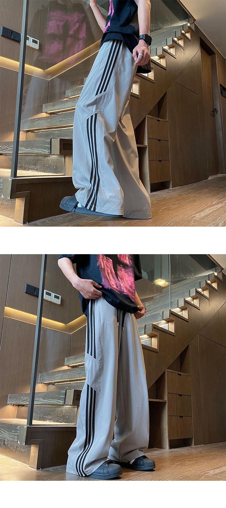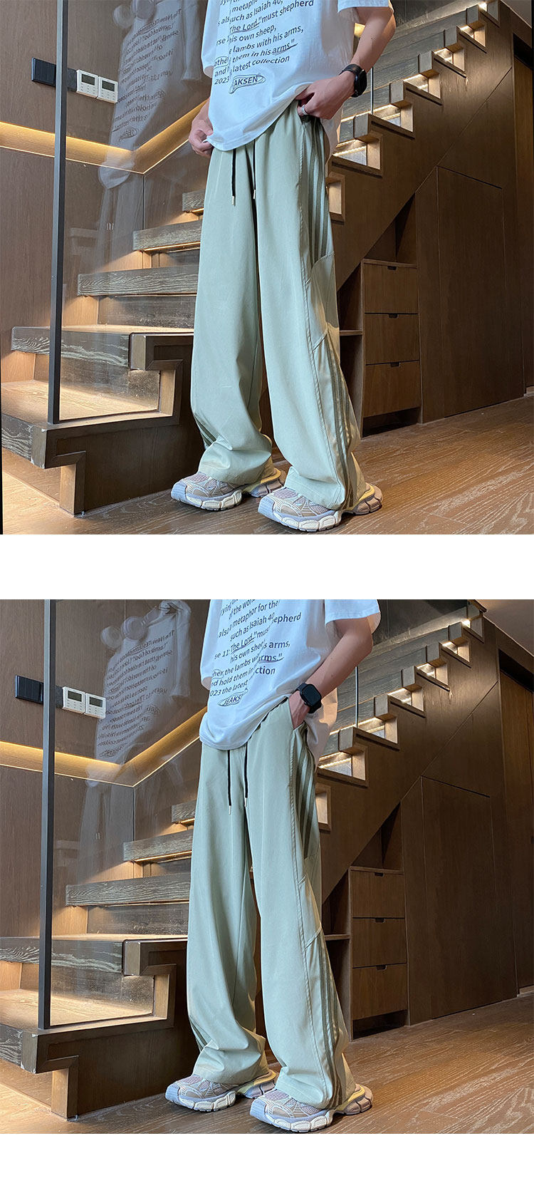 아이스 실크 속건성 바지 남성 여름 얇은 미국식 와이드 레그 스웨트 팬츠 청소년 소년 루즈 캐주얼 바지스토어 가기