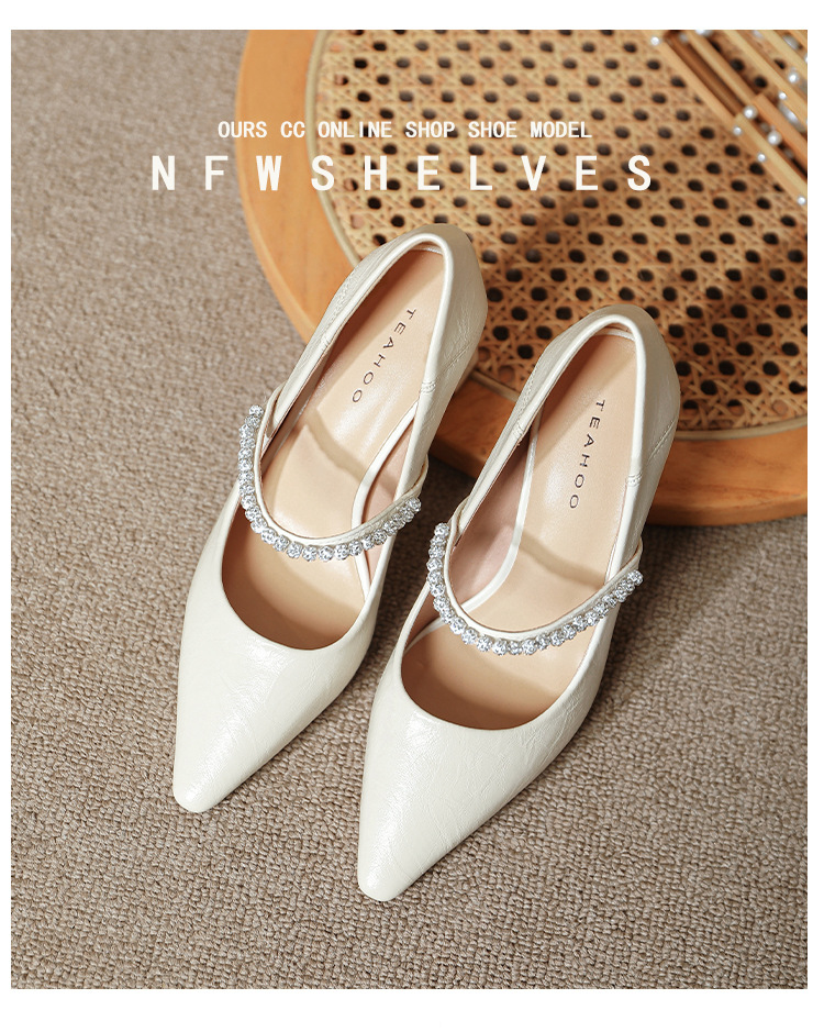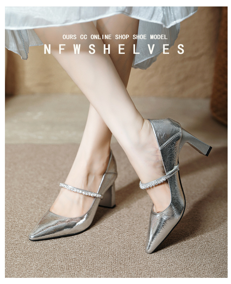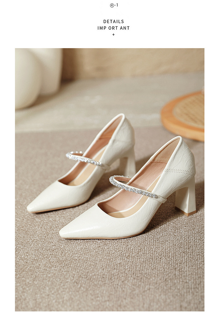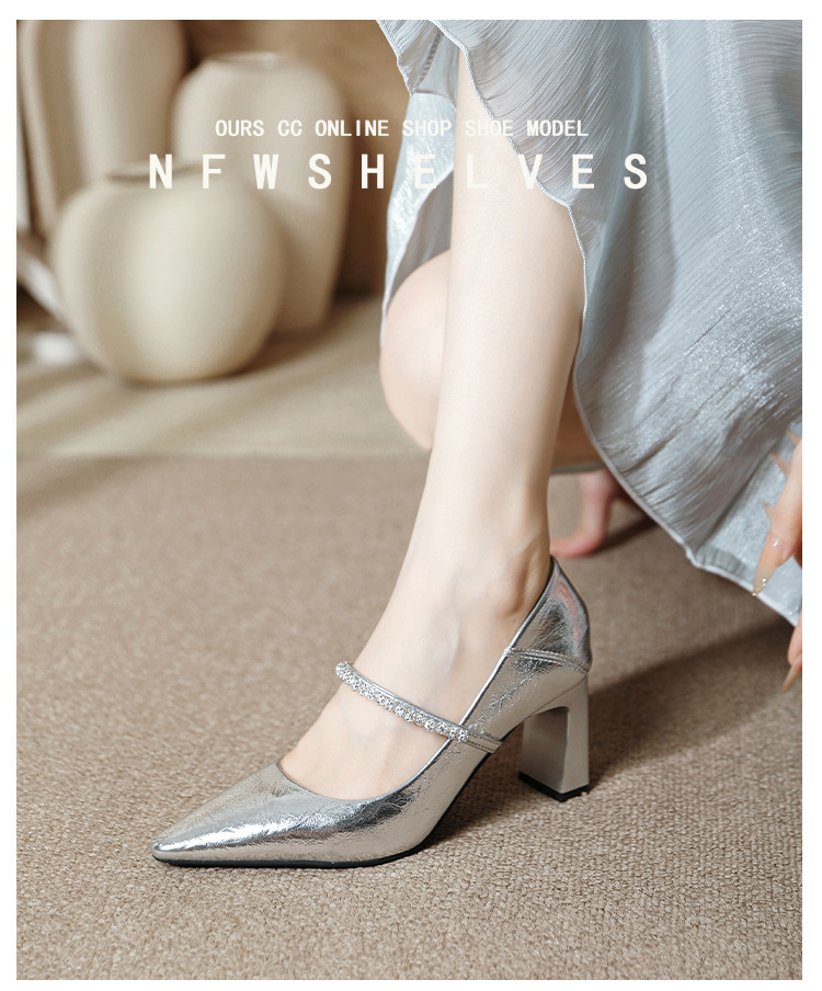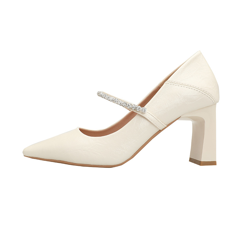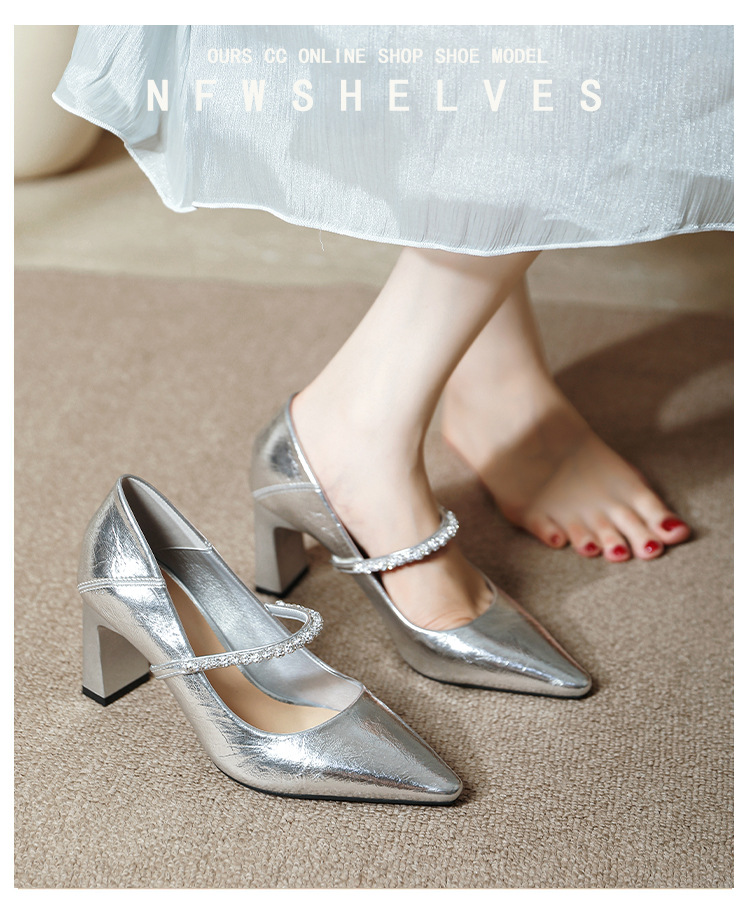 유럽과 미국의 여성용 하이힐 새로운 여름 스타일 다재다능한 뾰족한 발가락 메리 제인 섹시한 라인스톤 펌프스