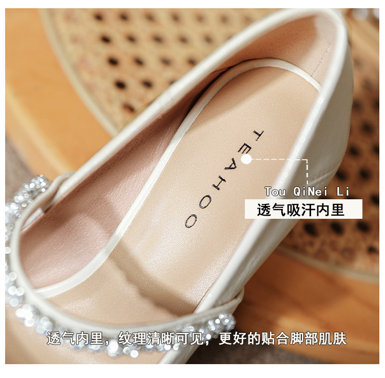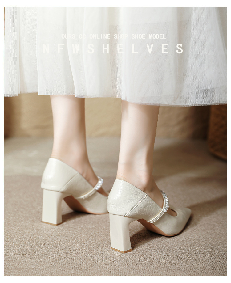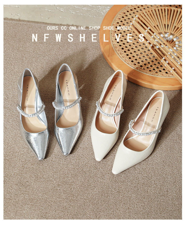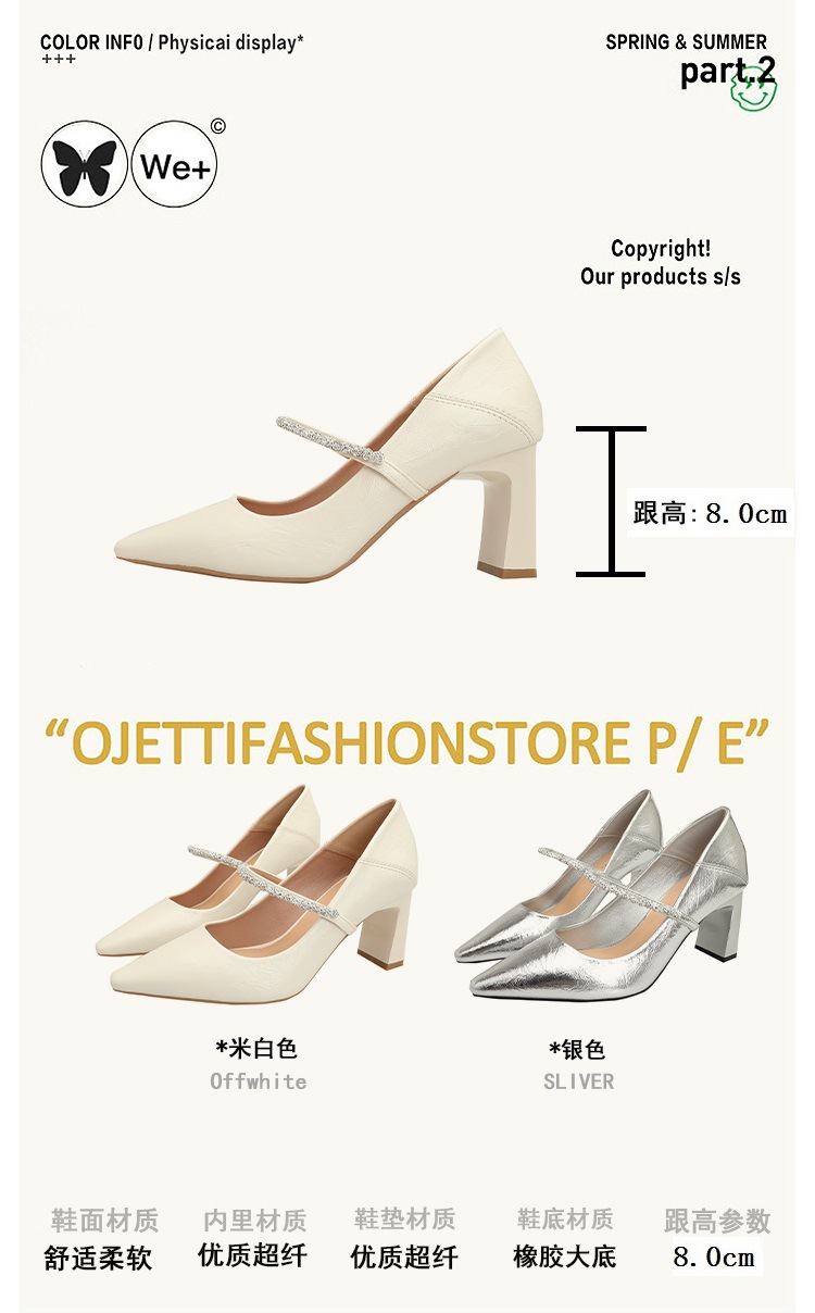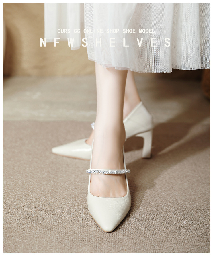 유럽과 미국의 여성용 하이힐 새로운 여름 스타일 다재다능한 뾰족한 발가락 메리 제인 섹시한 라인스톤 펌프스