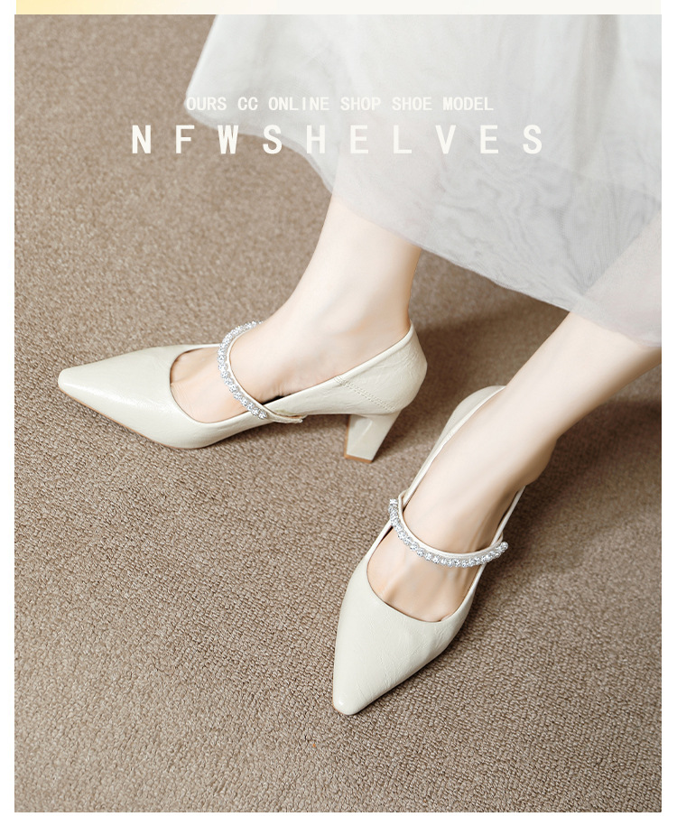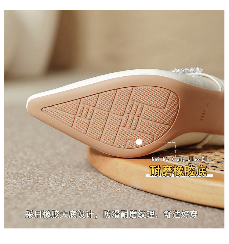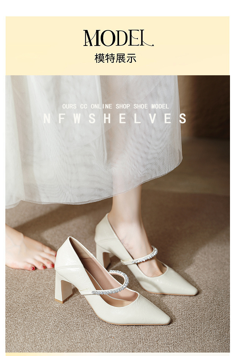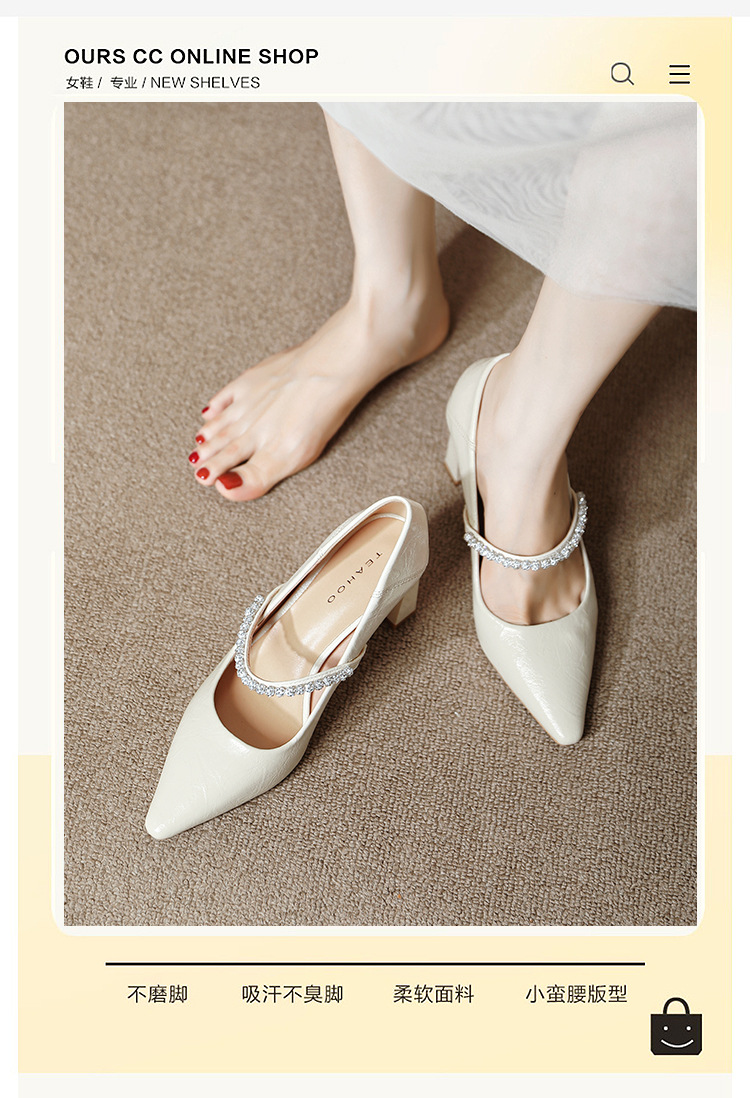 유럽과 미국의 여성용 하이힐 새로운 여름 스타일 다재다능한 뾰족한 발가락 메리 제인 섹시한 라인스톤 펌프스스토어 가기