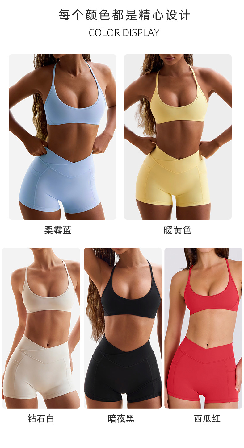 고탄성 홀터넥 스포츠 브라, 아름다운 등 브라, 크로스 웨이스트 피트니스 3점 반바지, 요가복 스포츠 슈트스토어 가기