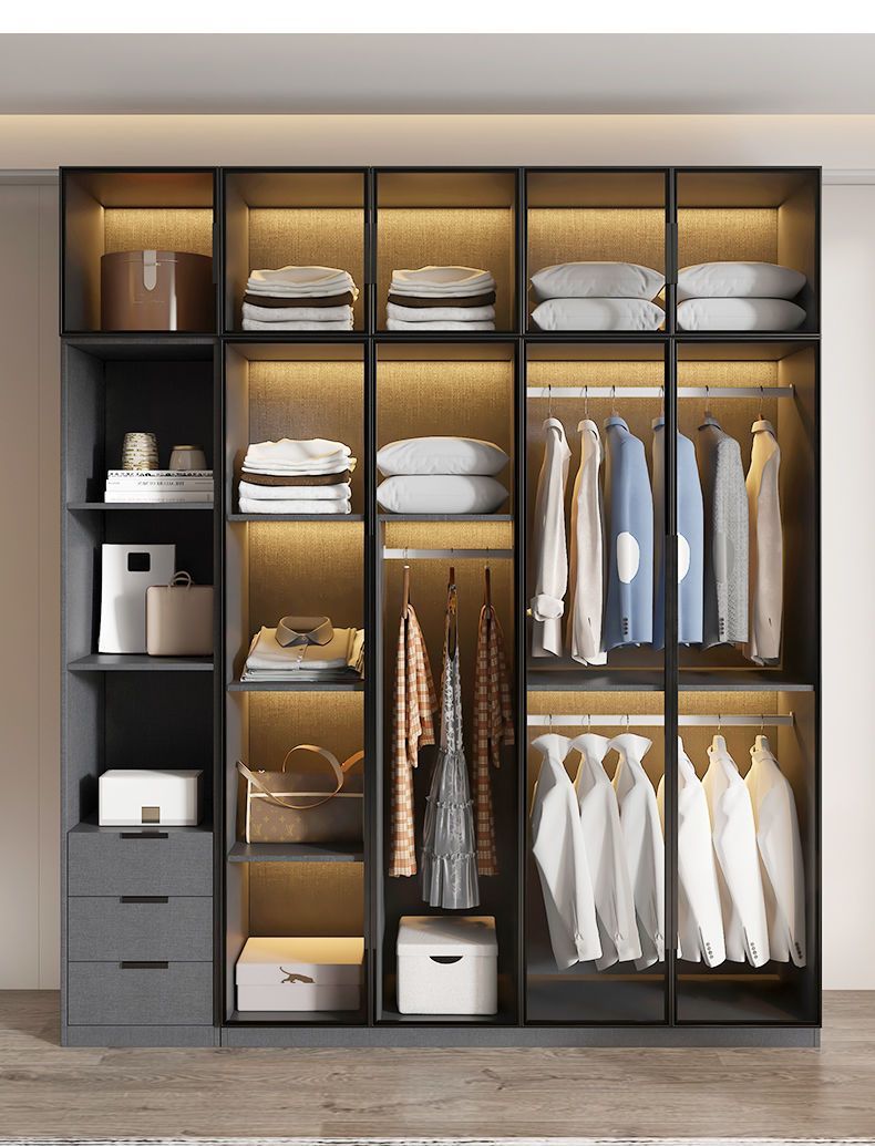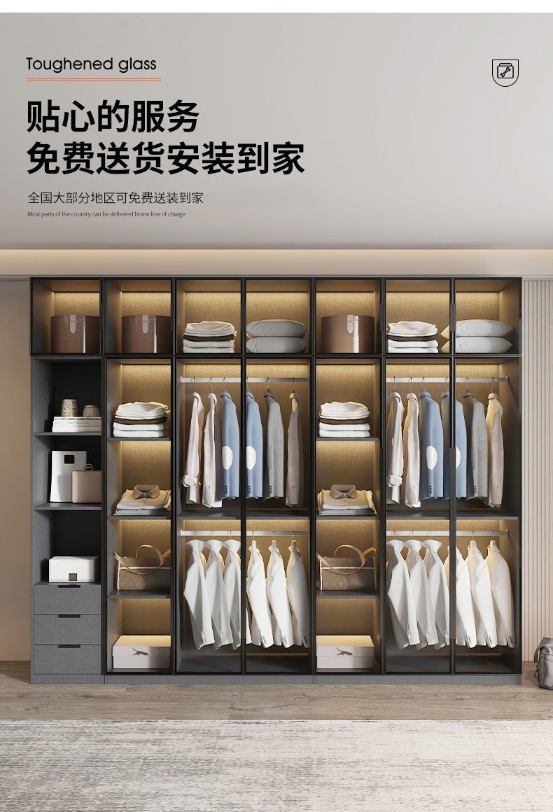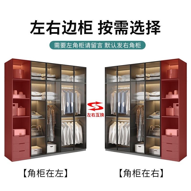 가벼운 고급 옷장 홈 침실 단단한 나무 작은 아파트 옷장 현대 간단한 스토리지 캐비닛 설치가 필요없는 유리 캐비닛스토어 가기