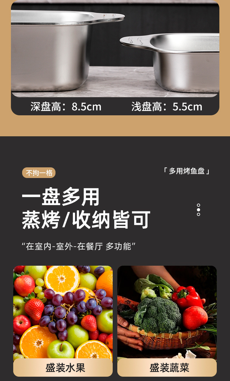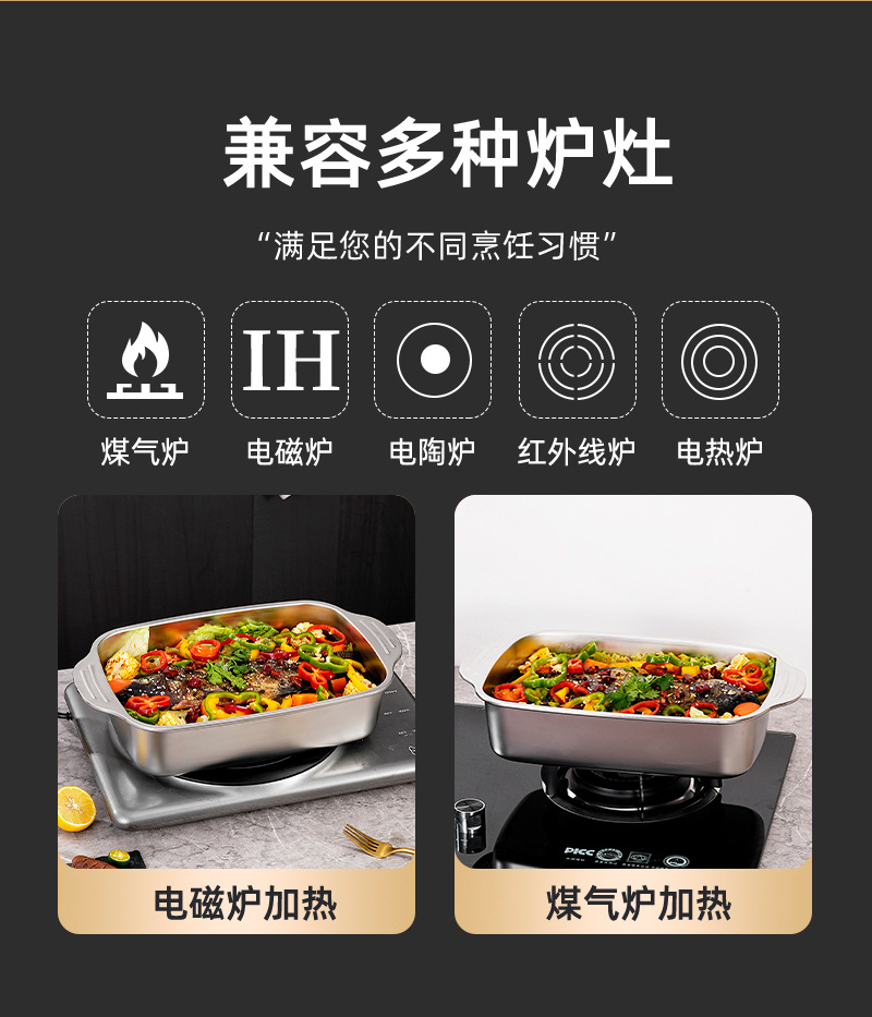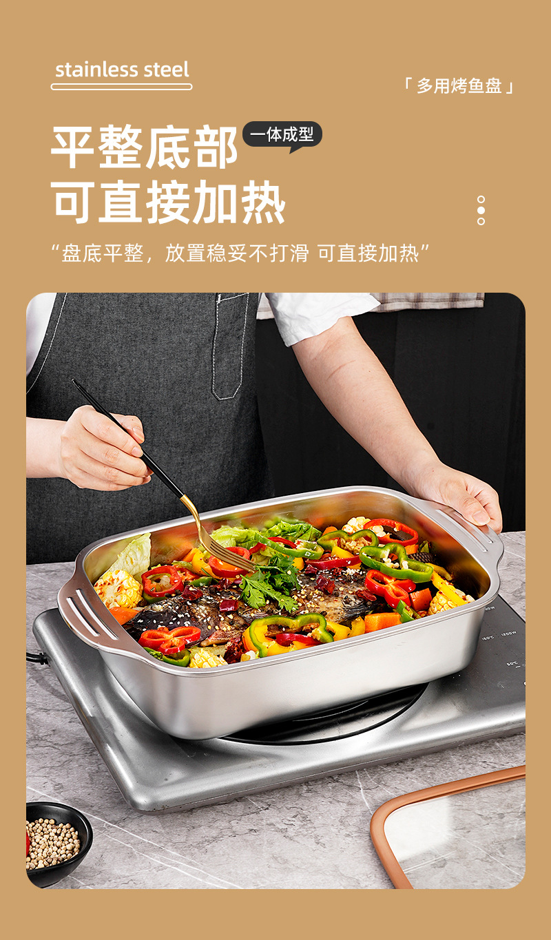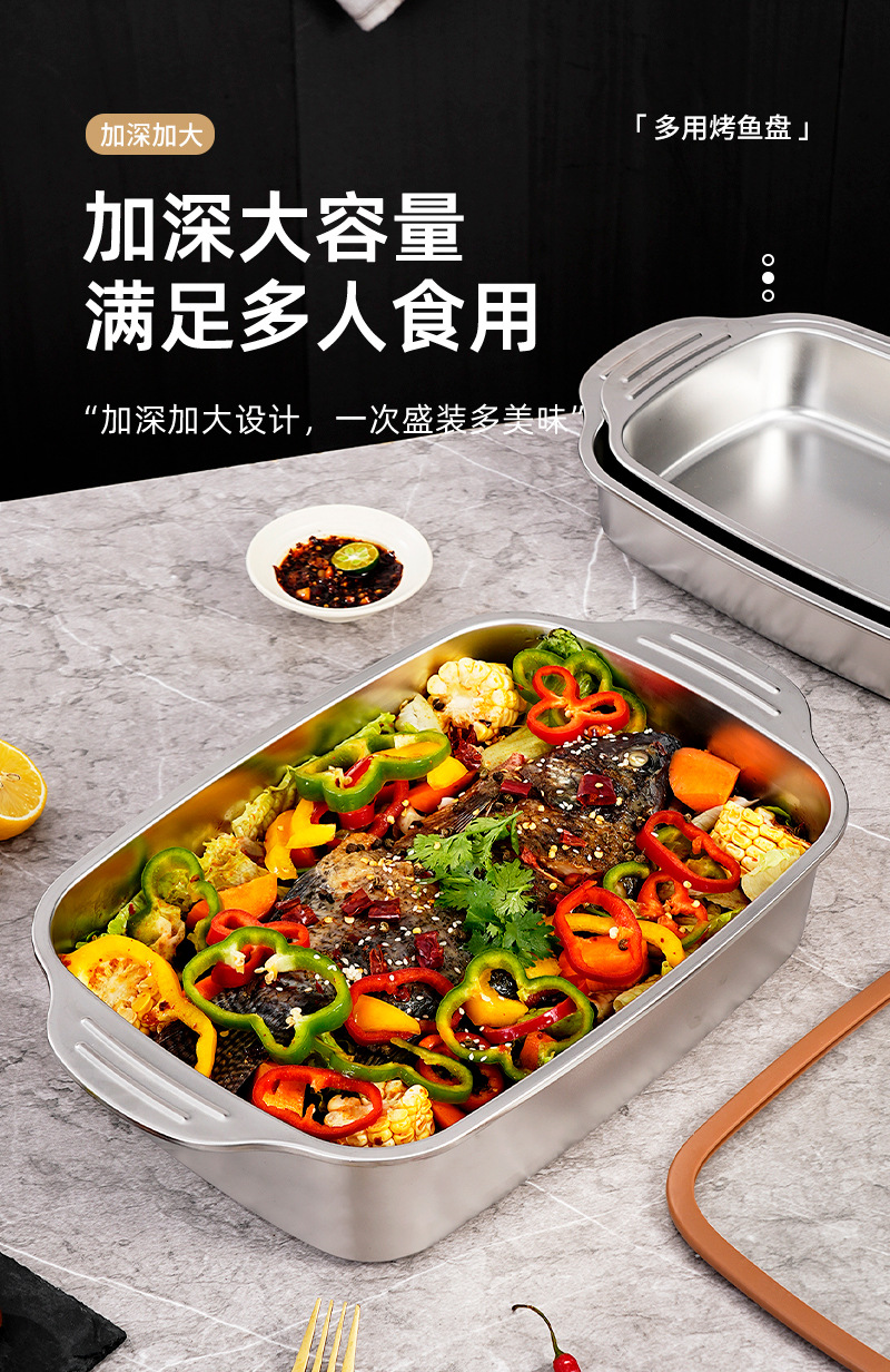 두꺼운 스테인레스 스틸 베이킹 팬, 상업용 대용량 생선 구이 팬, 가정용 양이 다용도 팬, 뚜껑이 있는 깊은 접시 트레이 도매