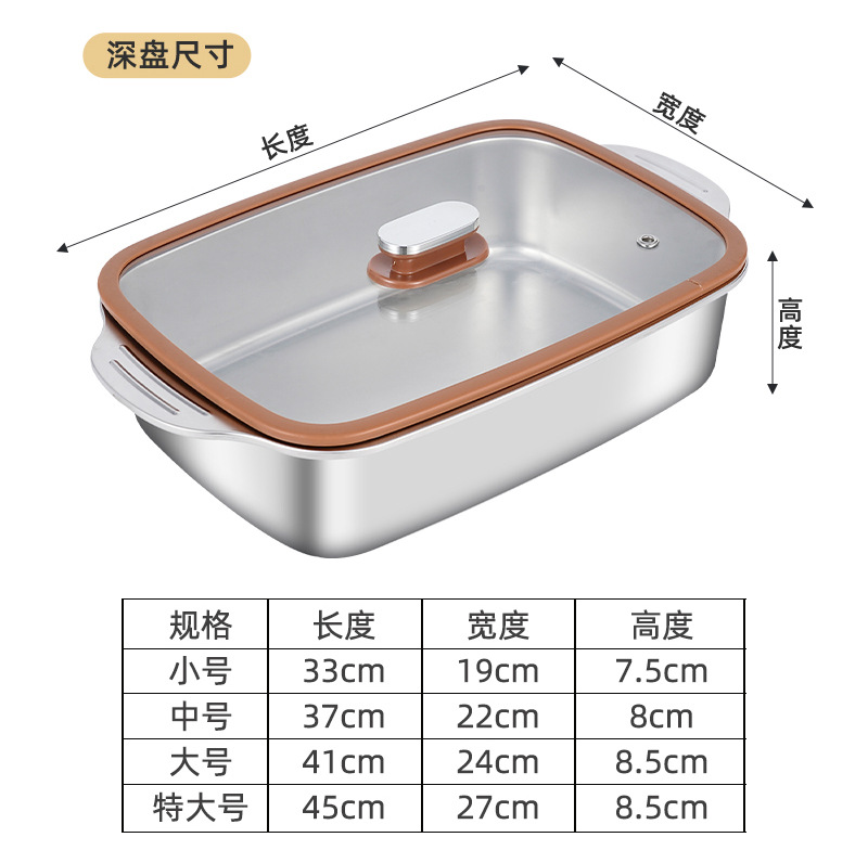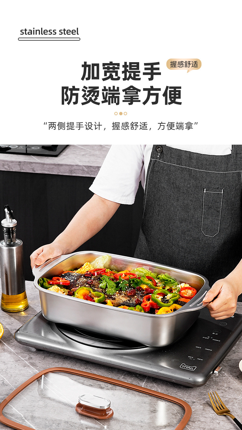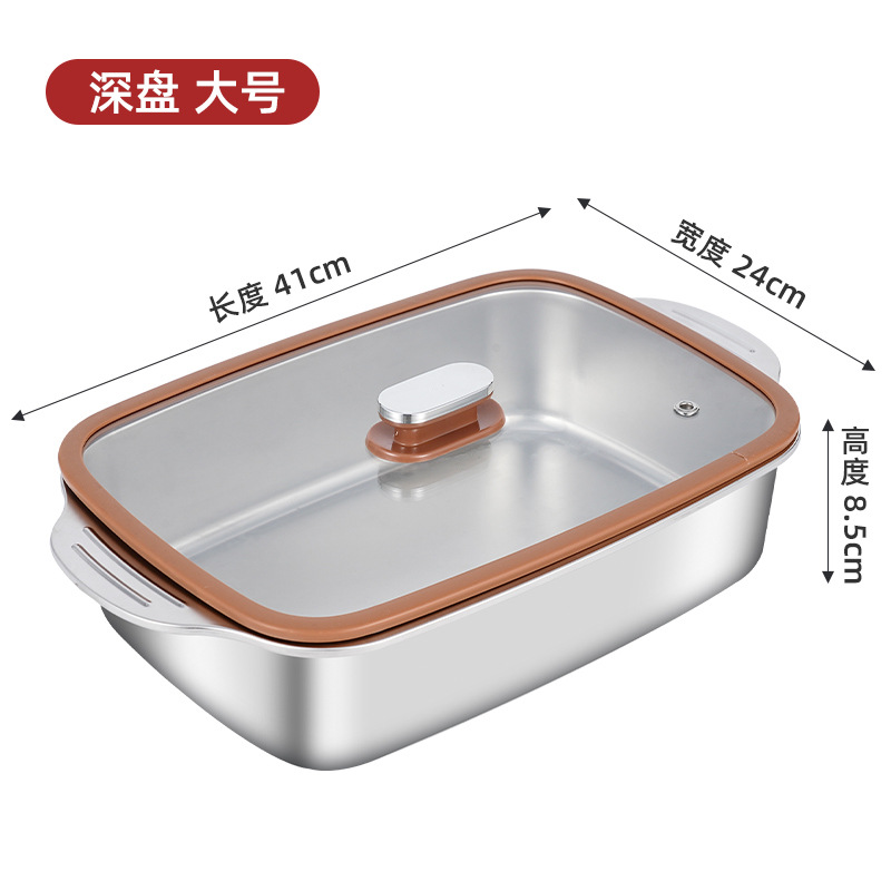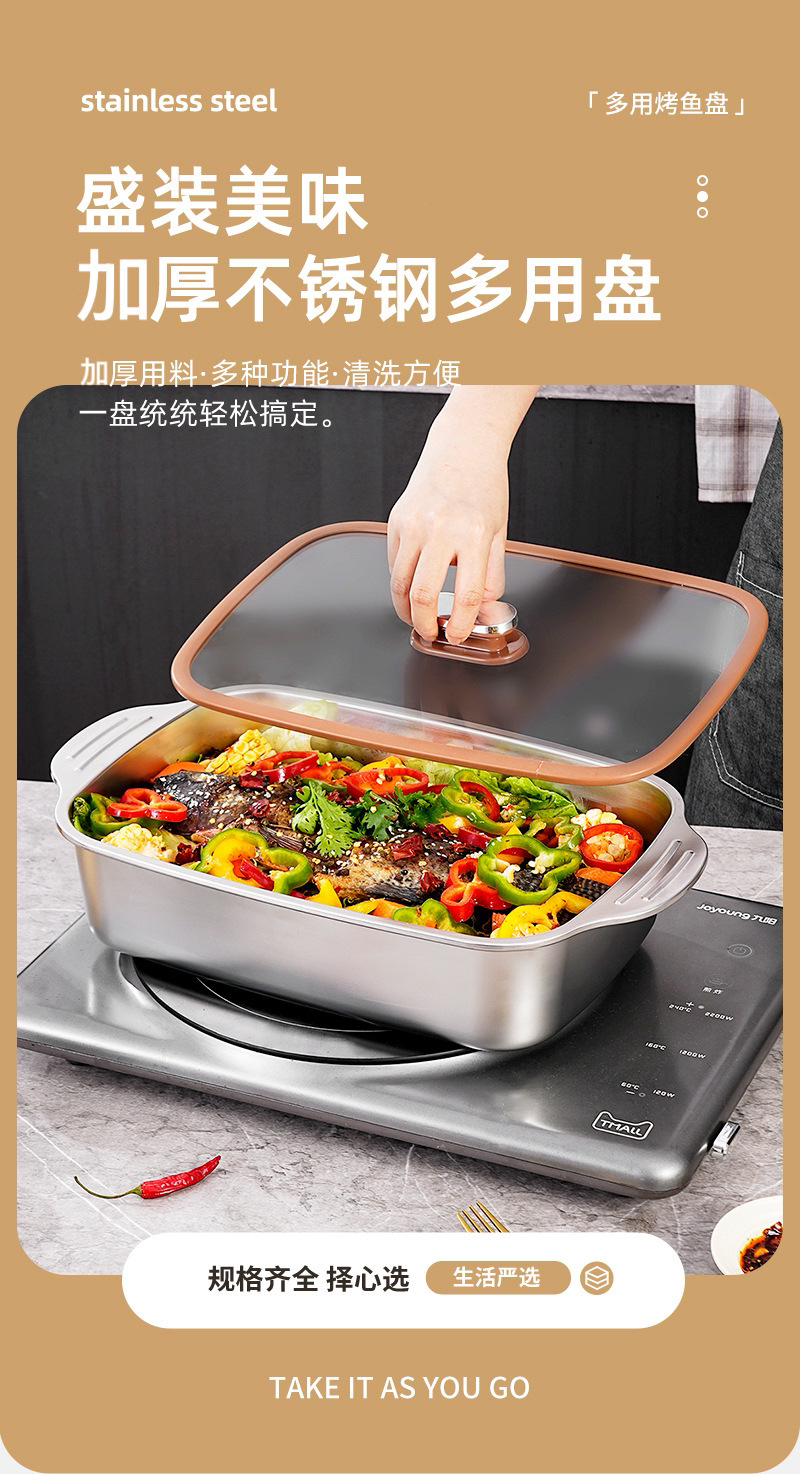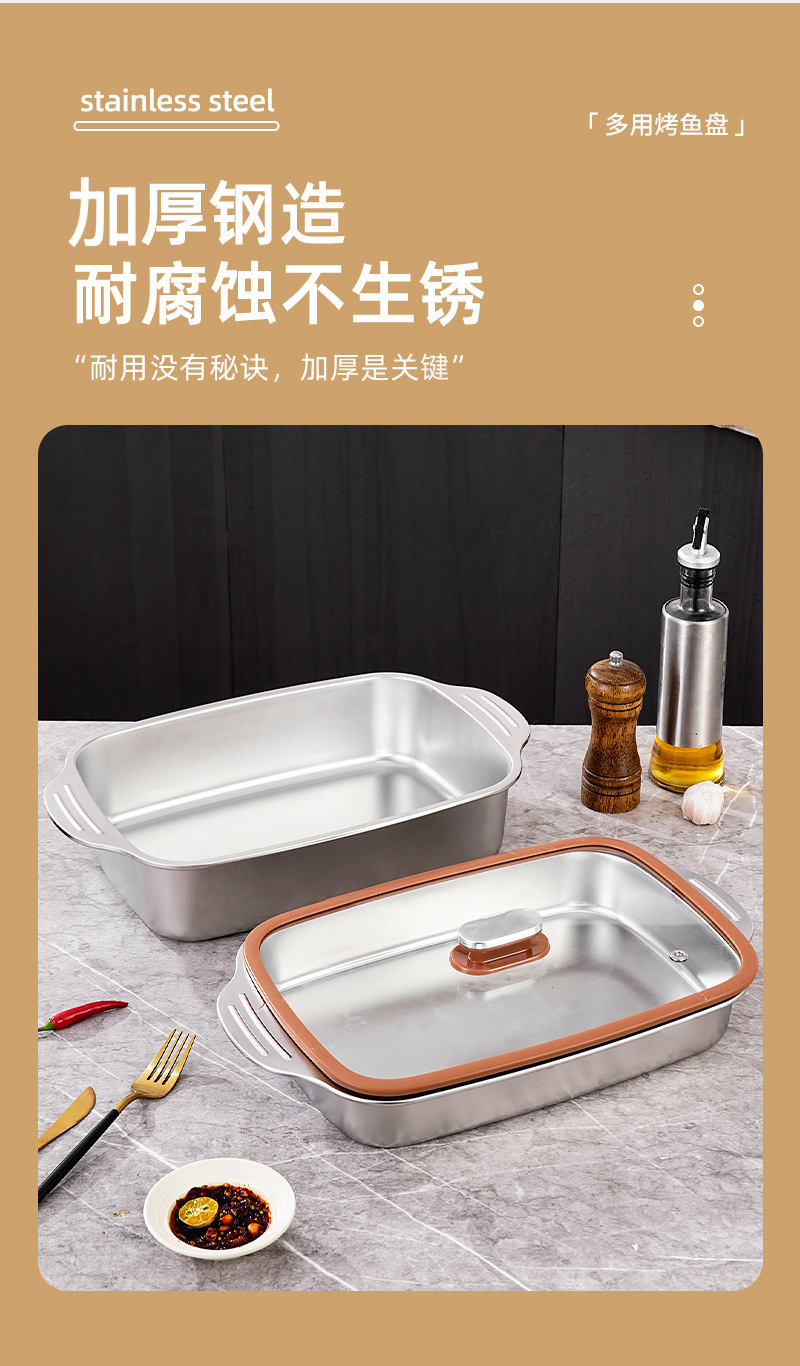 두꺼운 스테인레스 스틸 베이킹 팬, 상업용 대용량 생선 구이 팬, 가정용 양이 다용도 팬, 뚜껑이 있는 깊은 접시 트레이 도매스토어 가기