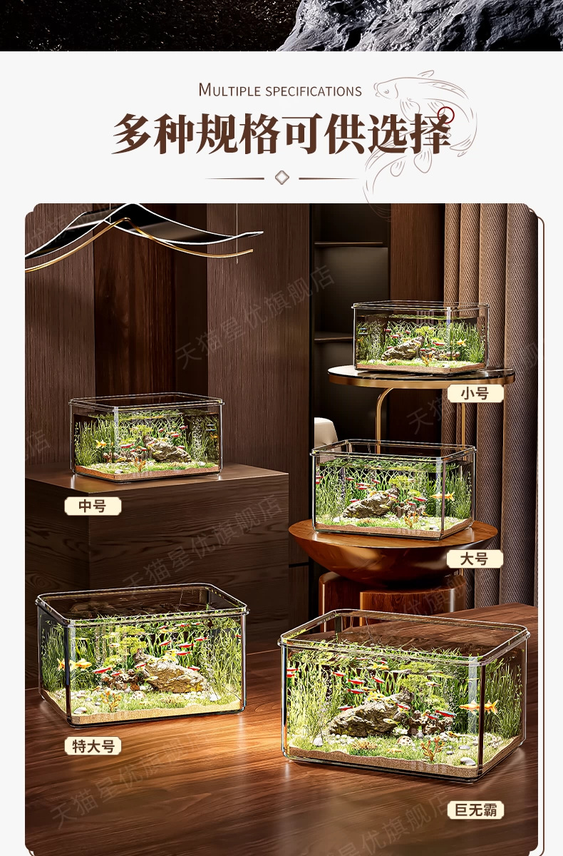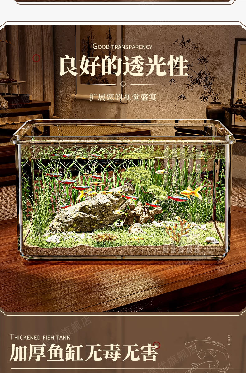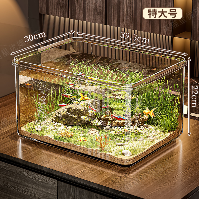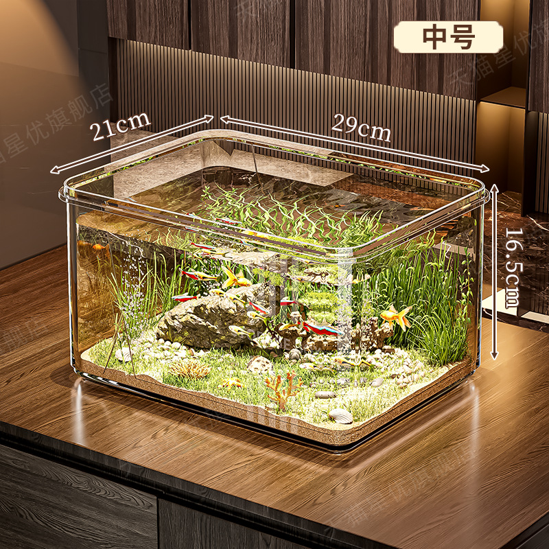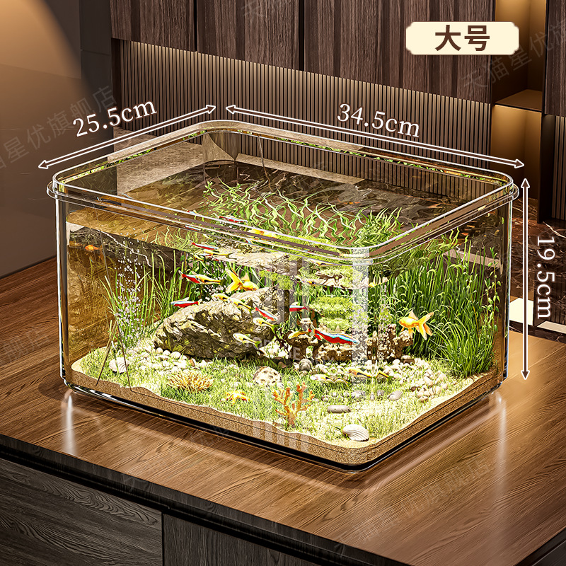 물고기 탱크 가정용 작은 거실 생태 조경 뚜껑이있는 물 탱크 전체 세트 투명 데스크탑 금붕어 탱크 두꺼운 거북이 탱크스토어 가기