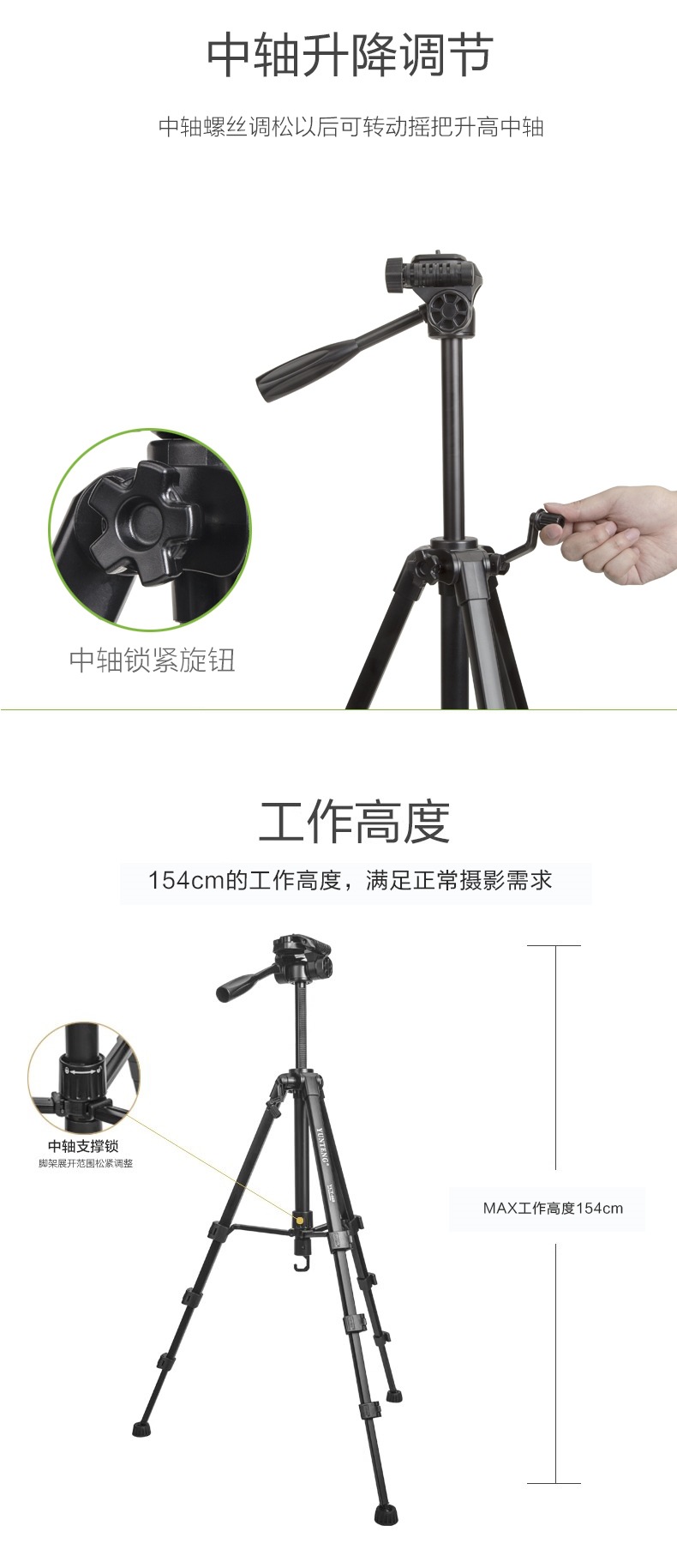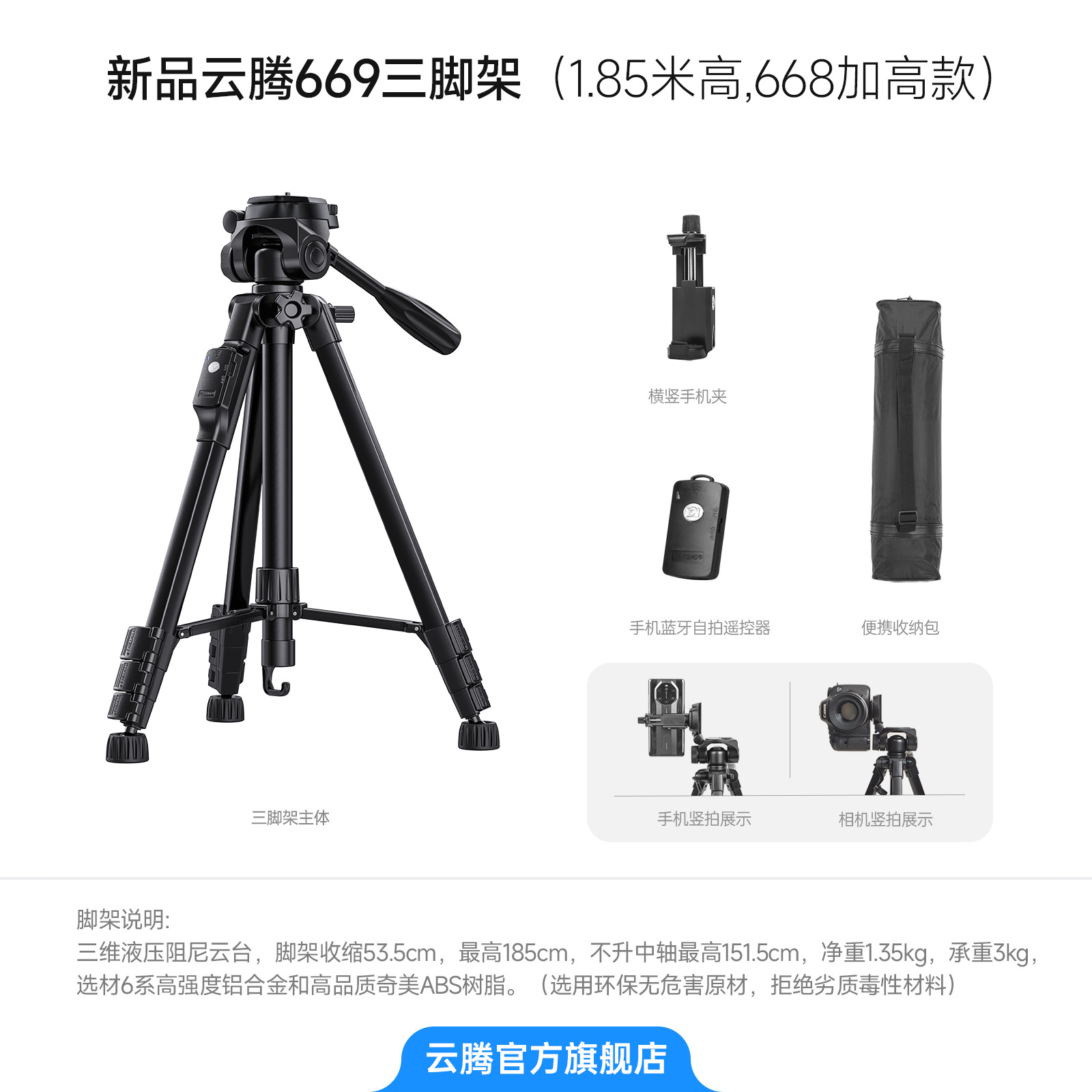 • 신제품 [668 강화 버전 2.519m ] 알루미늄 합금 - 전문 삼각대 - 더욱 안정적 - 더욱 높아짐] 보관 가방 + 휴대폰 셀카 + 수평 및 수직 휴대폰 클립 포함